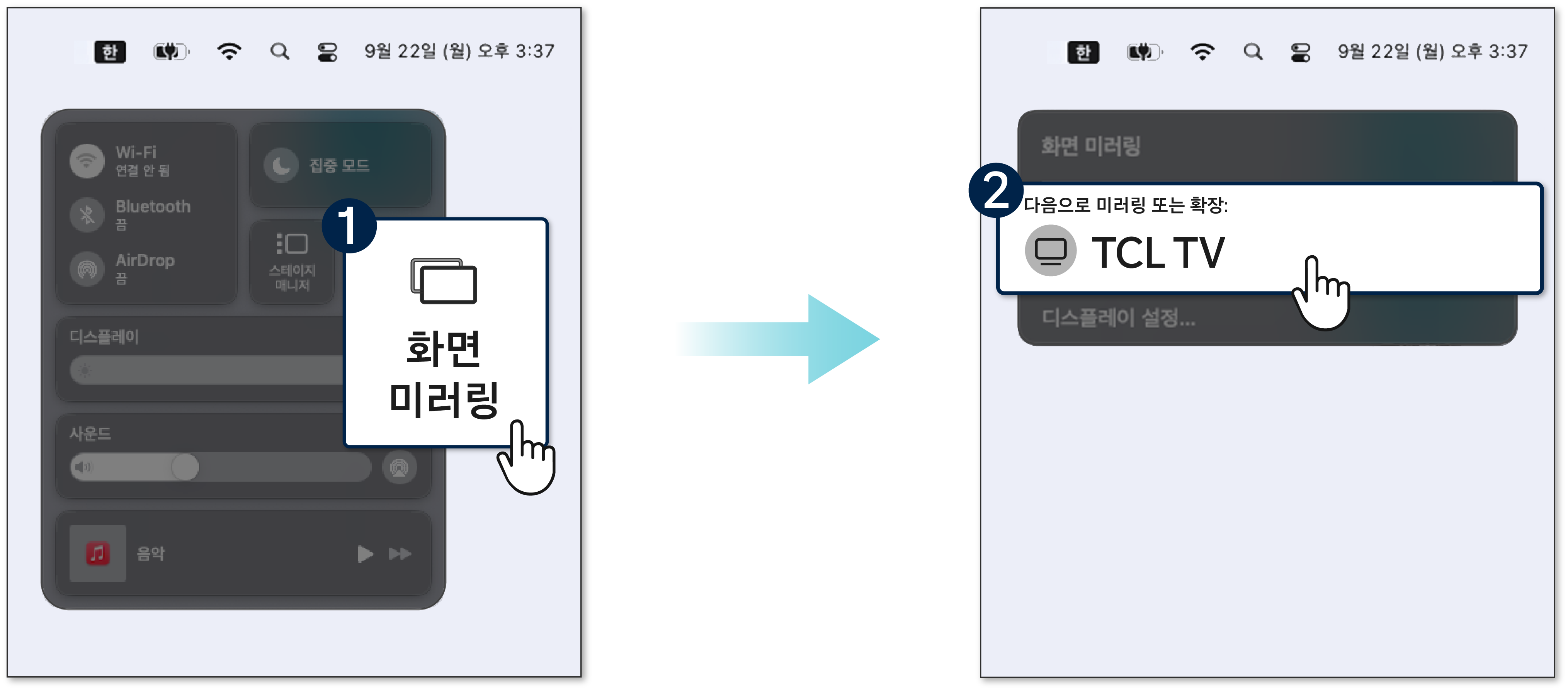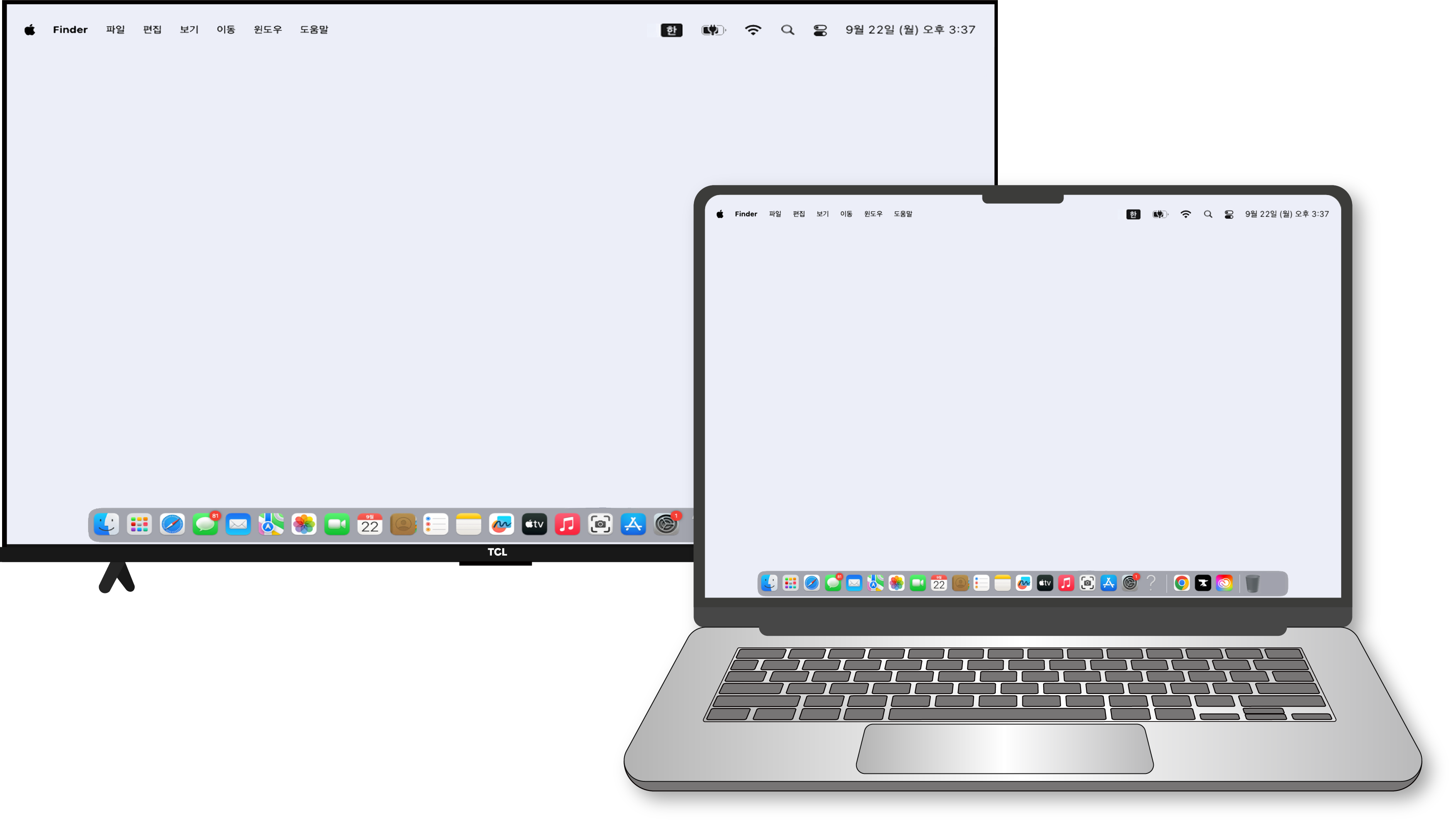 ④ TV와 Macbook(맥북)이 정상적으로 연결되면 미러링이 시작됩니다.