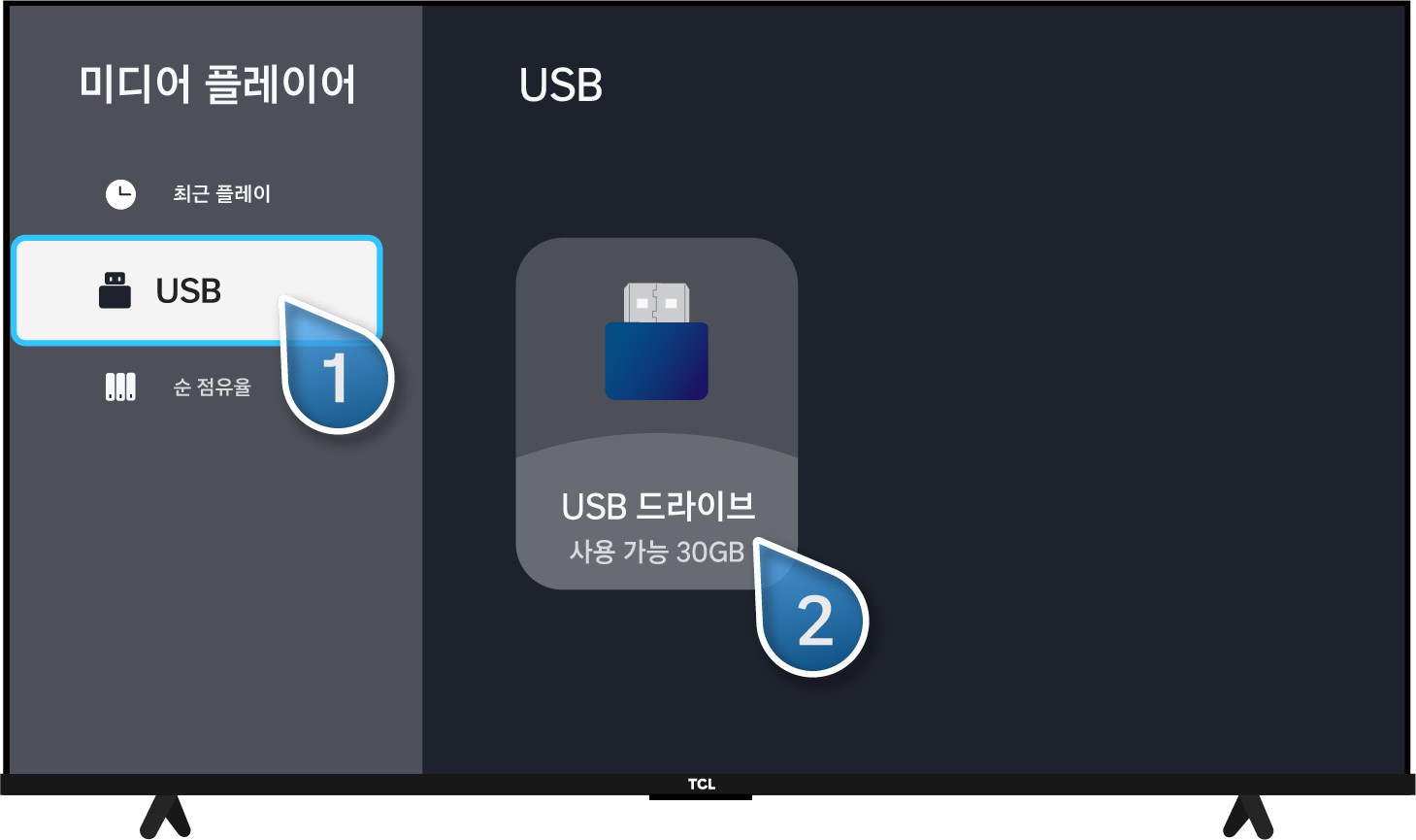 USB 저장 장치 선택 방법: TCL 리모컨 외부 입력 (