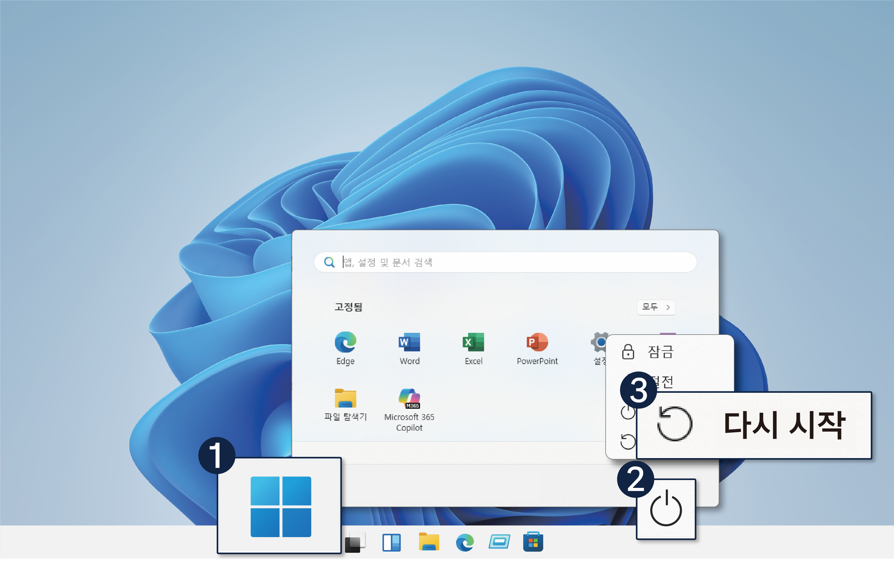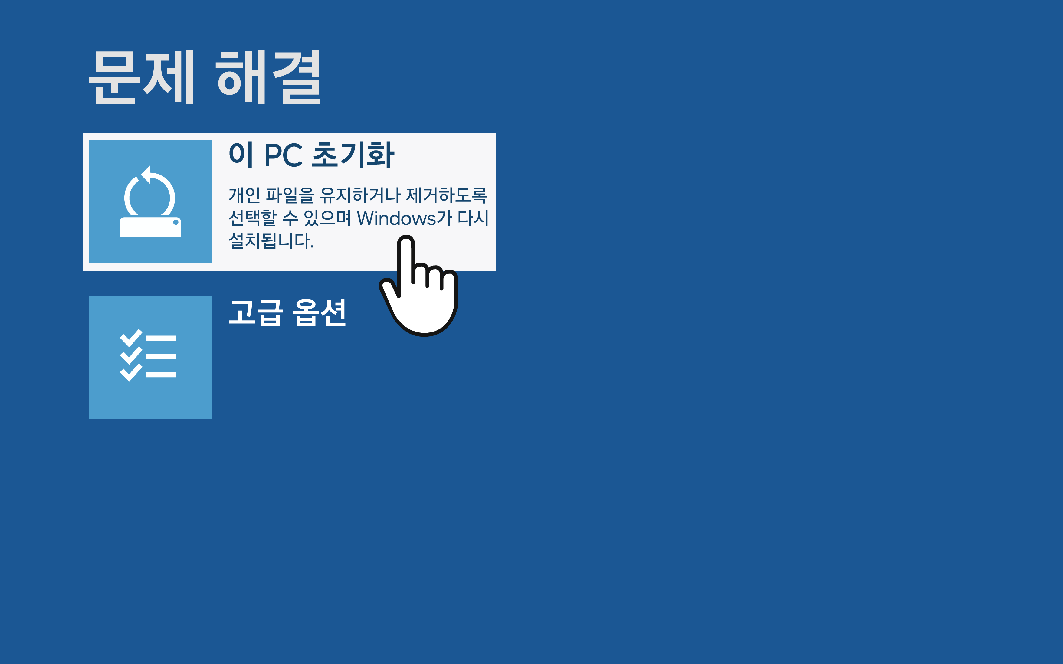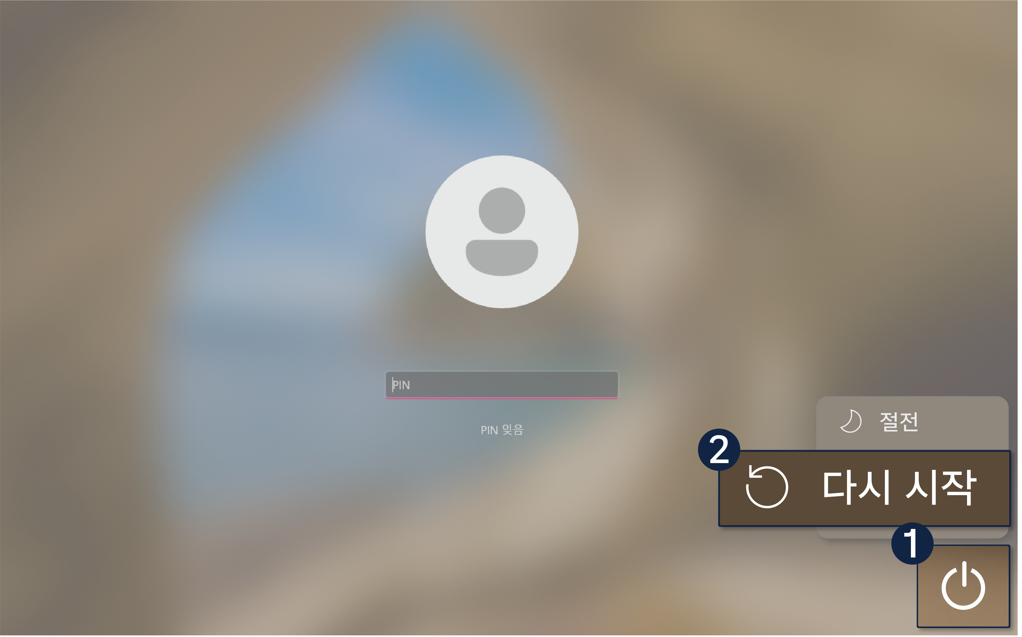 키를 누른 상태에서 전원 아이콘을 선택한 뒤 다시 시작 버튼을 눌러주세요.