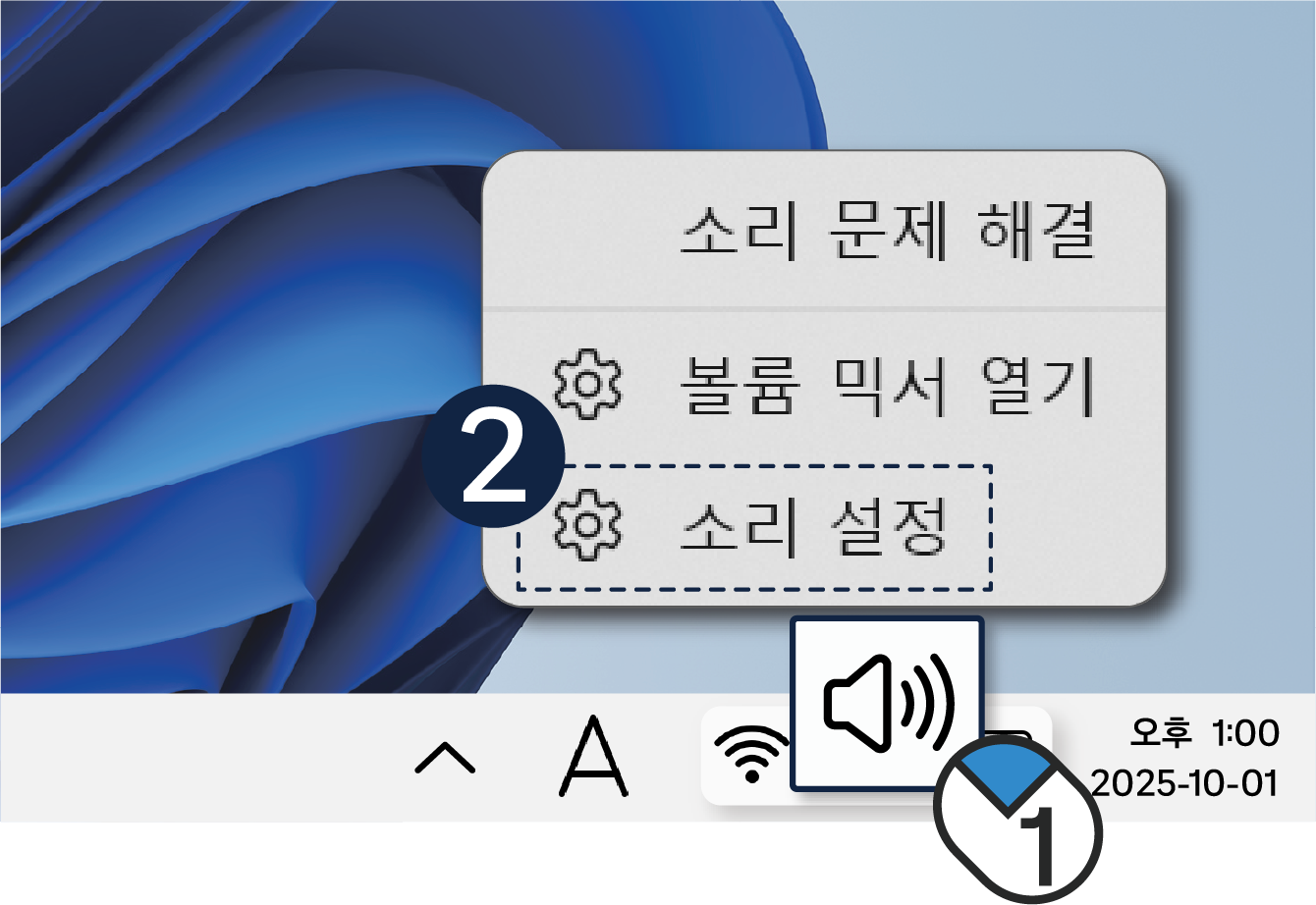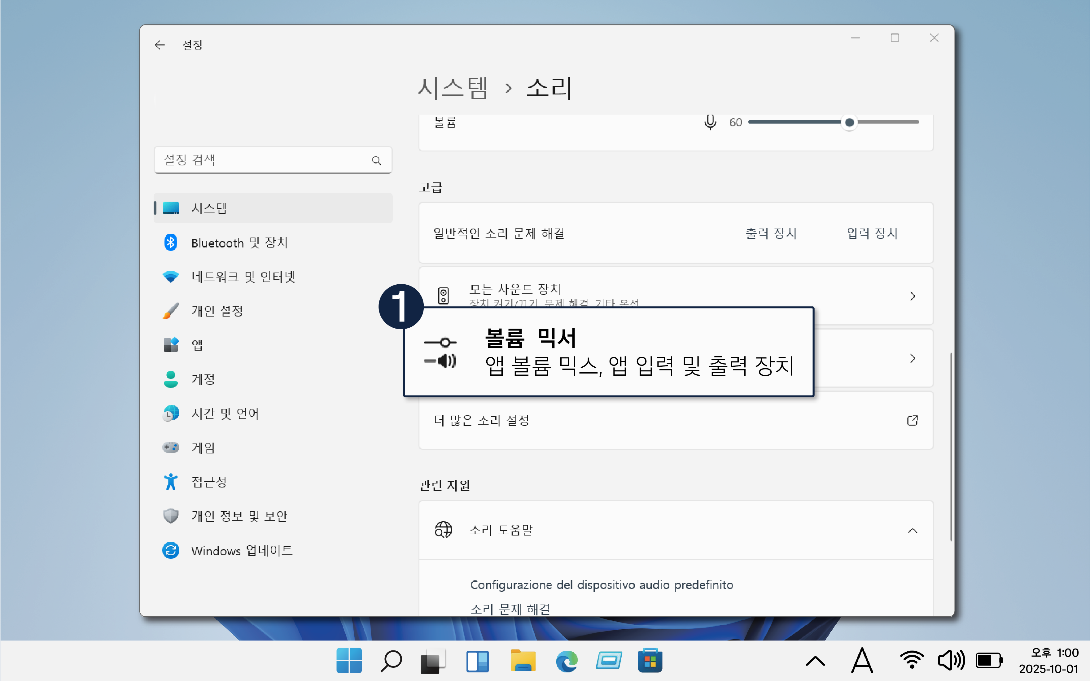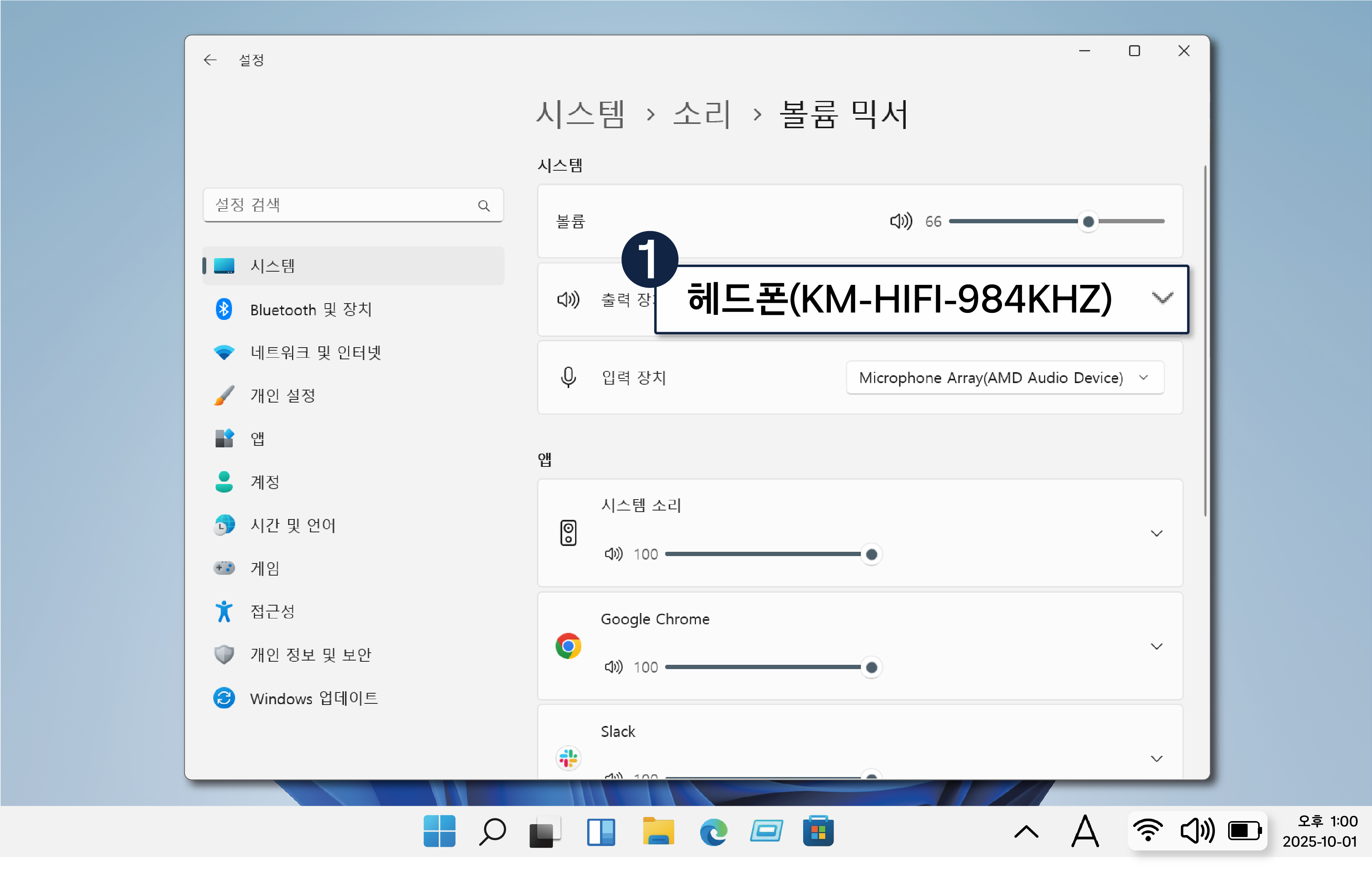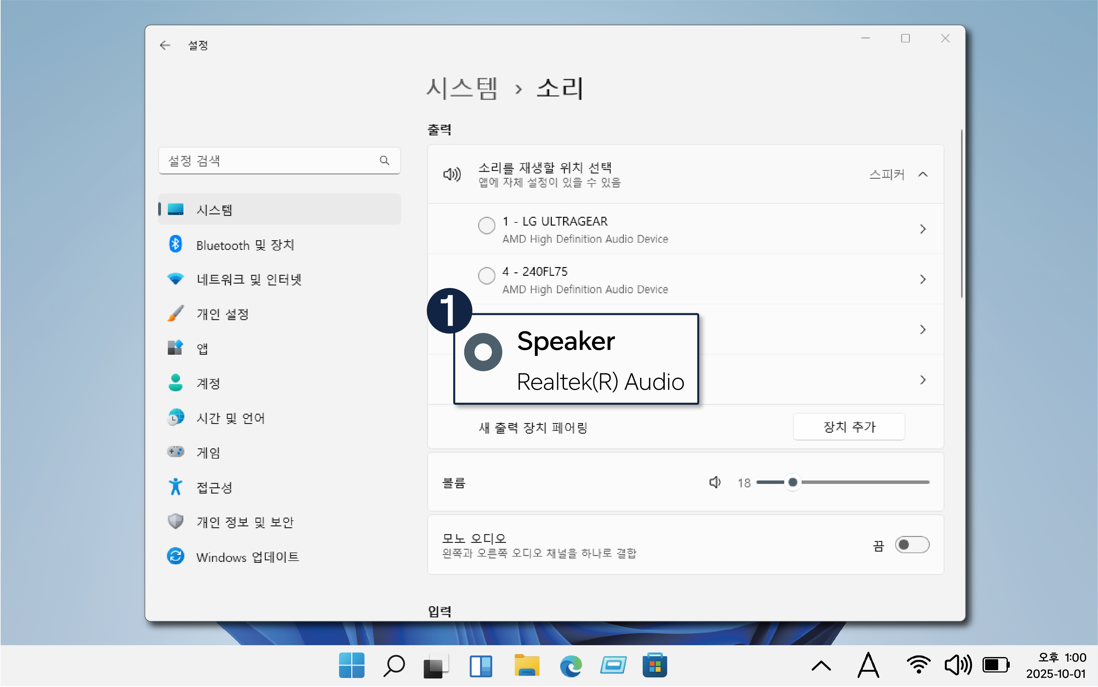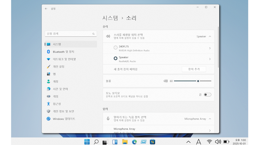 설정된 출력 장치가 다를 경우 소리가 나지 않을 수 있습니다.
