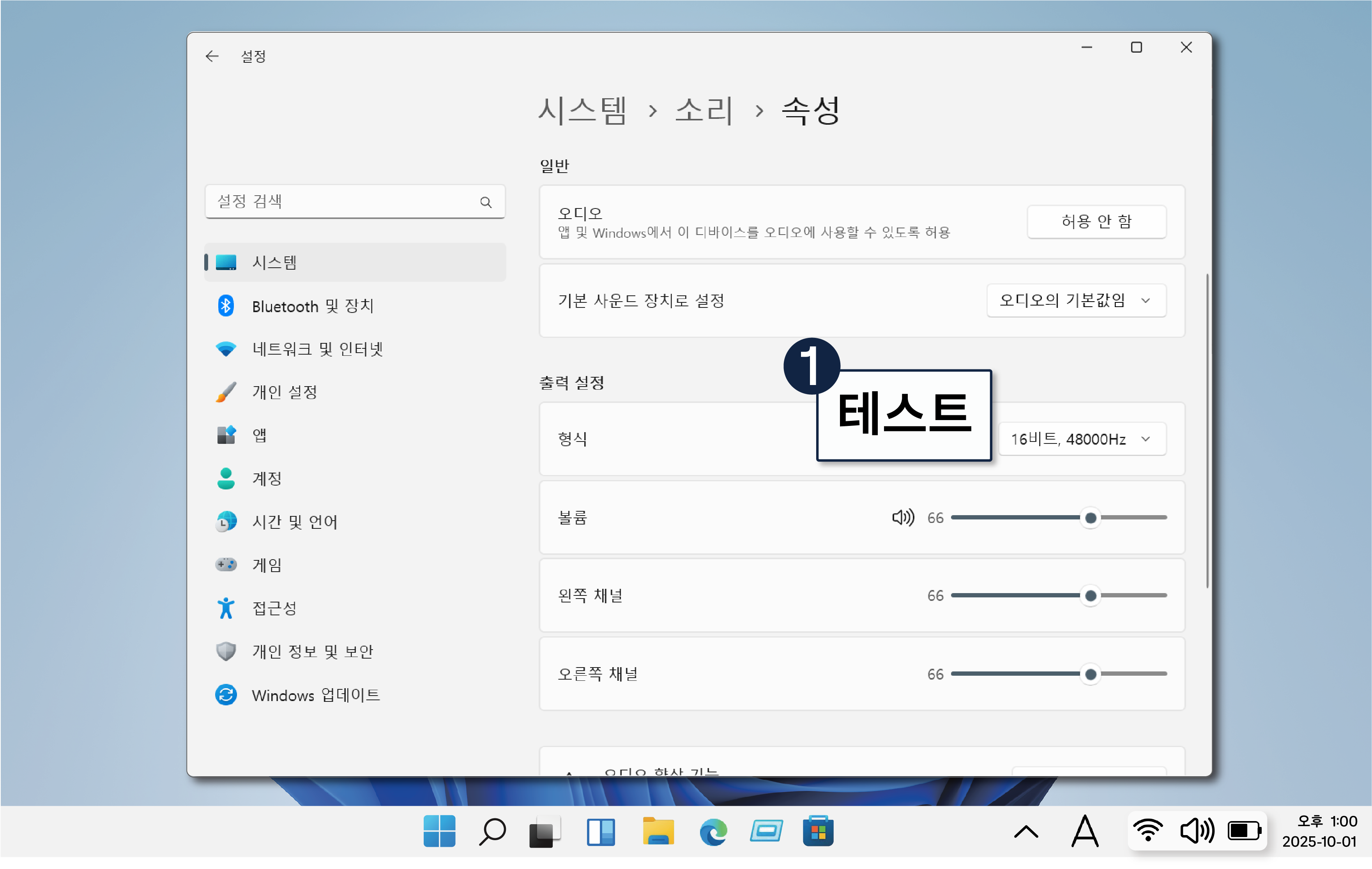 테스트 시 띠리링~ 하는 소리가 들립니다.