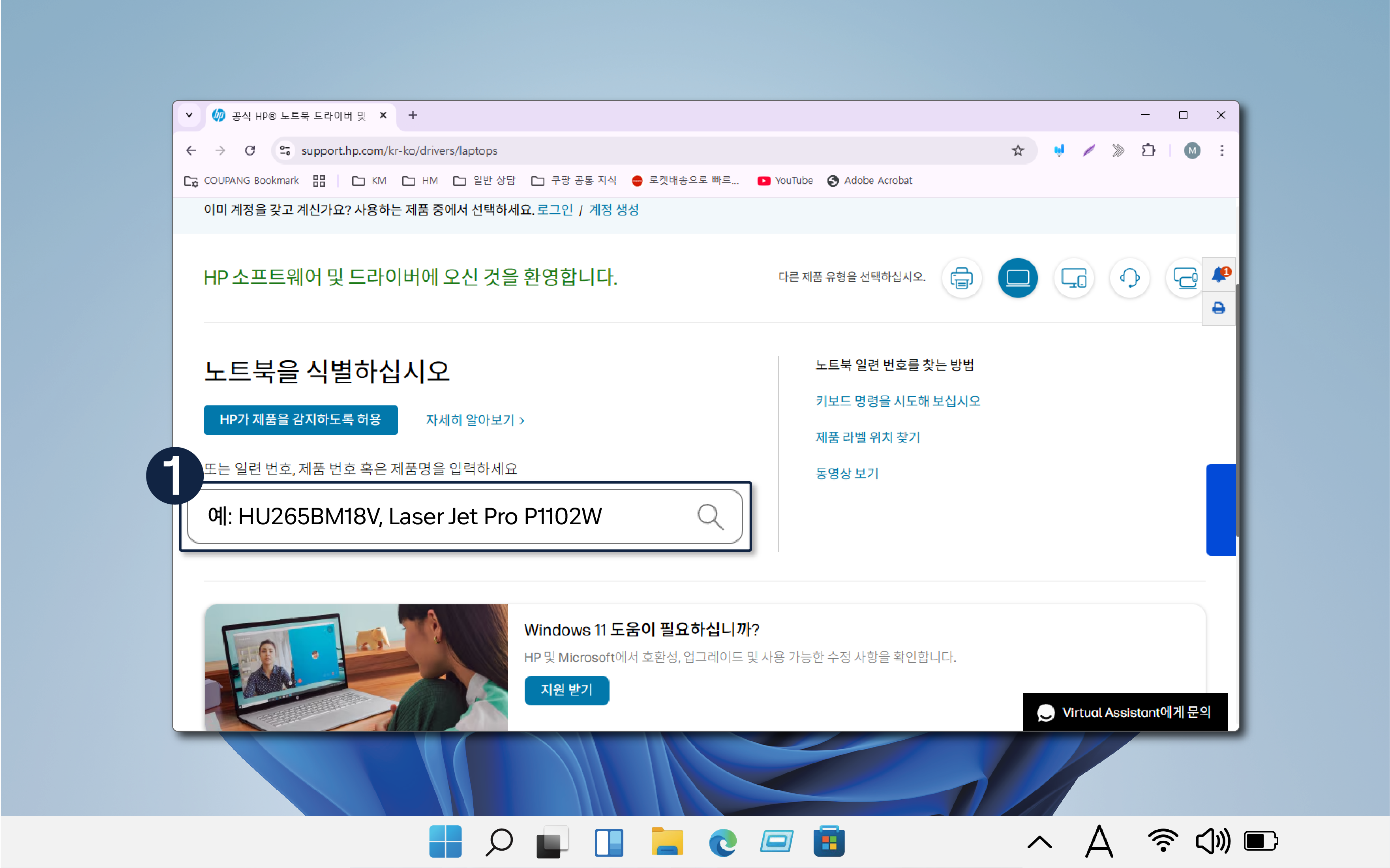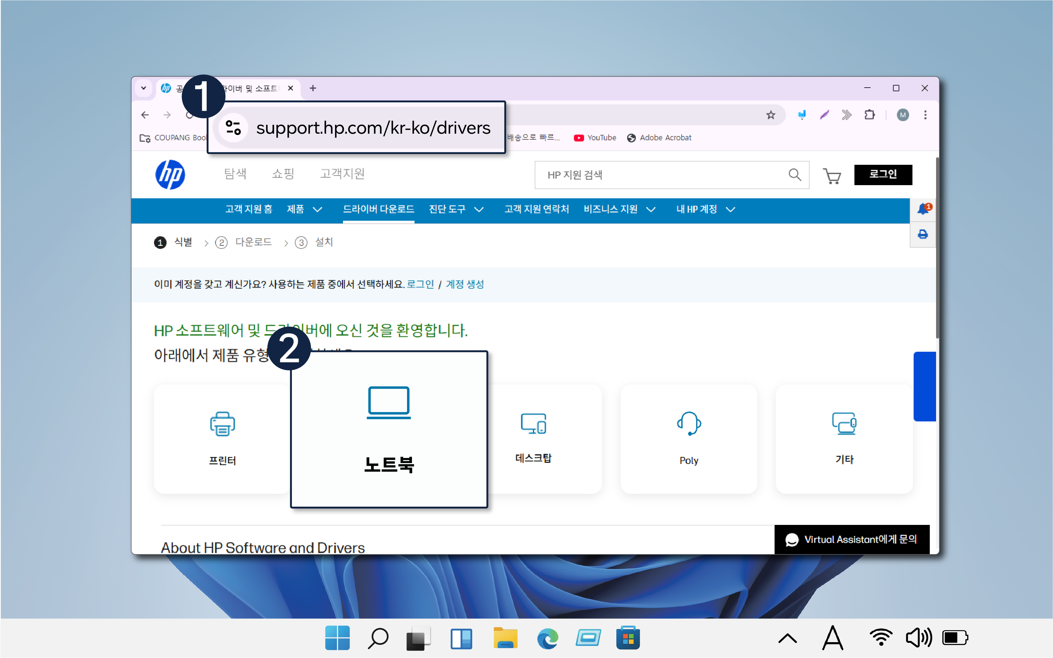 ① HP 제조사 드라이버 다운로드 센터(링크 연결)로 접속 후 노트북을 클릭합니다.
