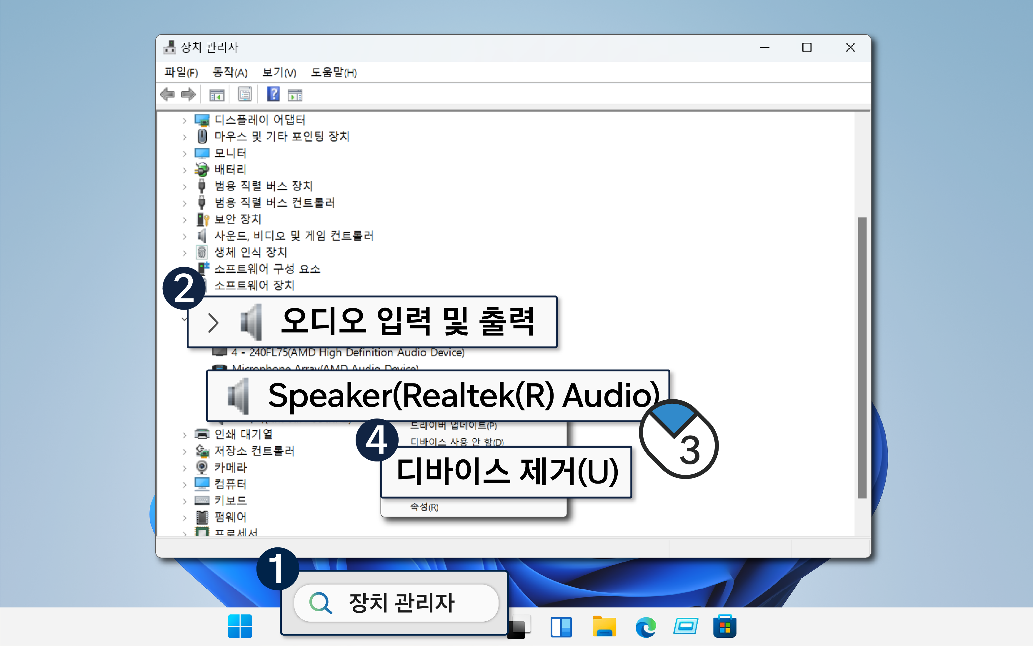 블루투스로 스피커나 이어폰을 연결하는 경우 블루투스 드라이버를 제거하고 재부팅해 주세요.