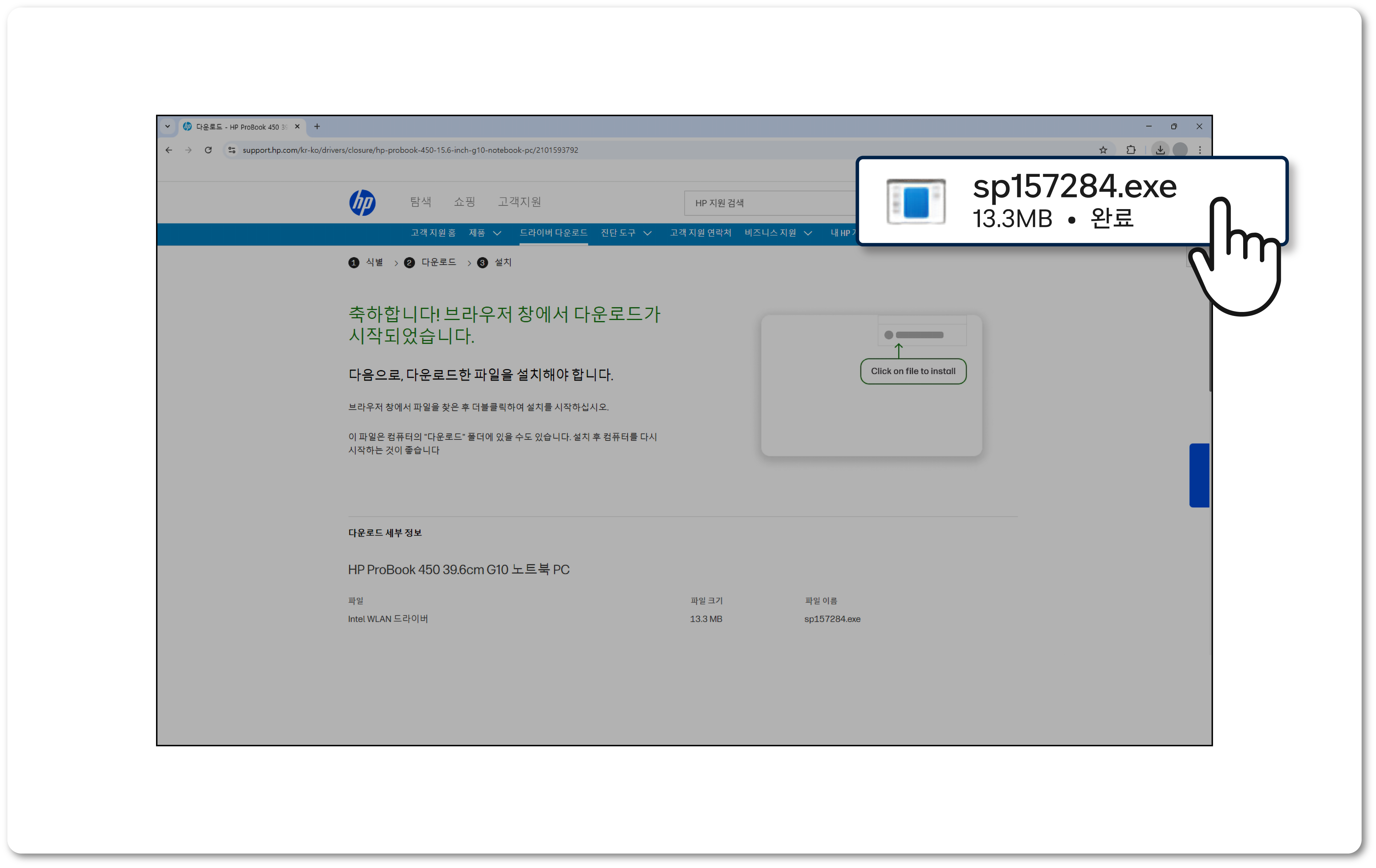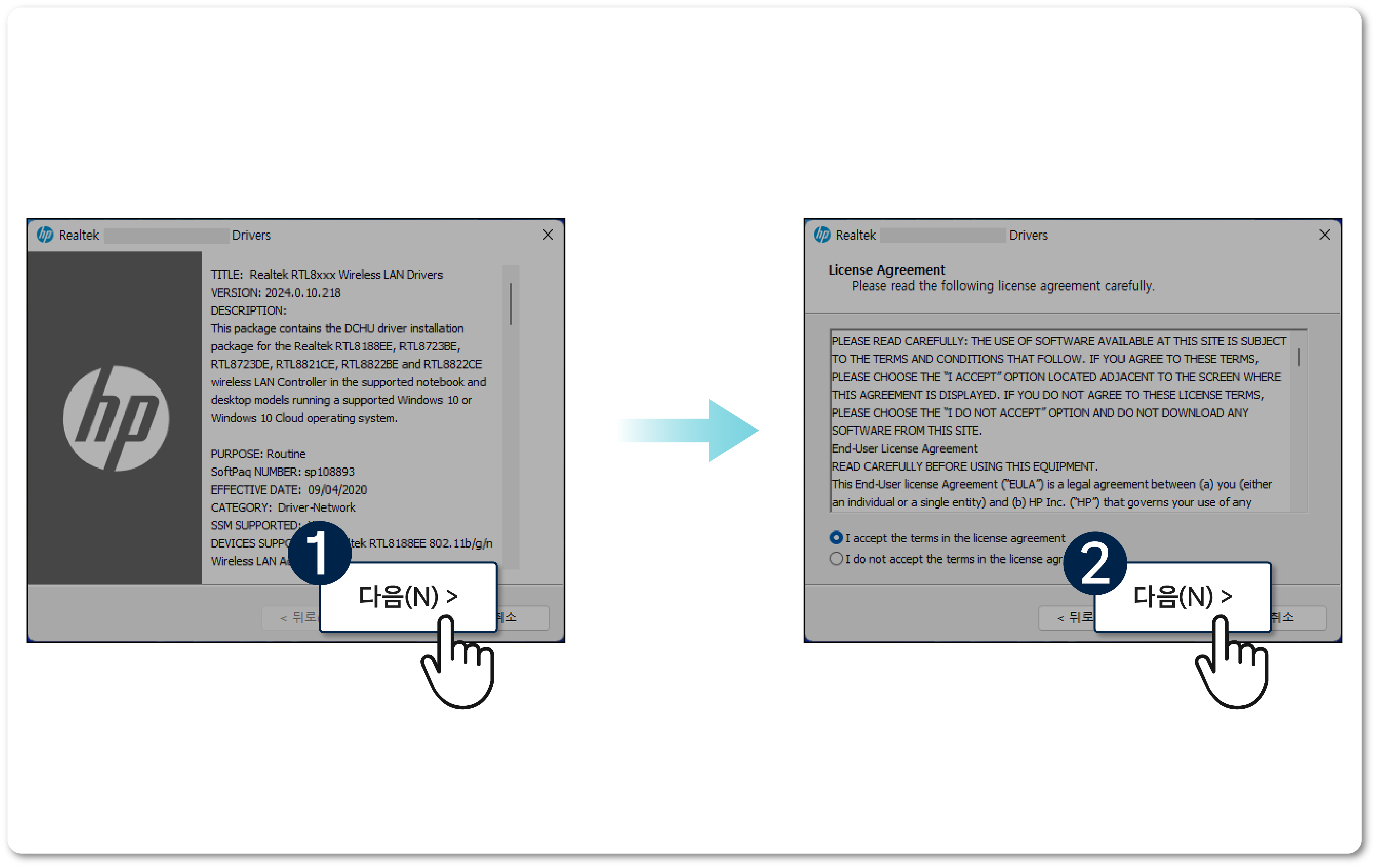 ② 다른 기기에 Wi-Fi 연결이 정상적으로 될 경우에는 HP 고객센터를 통해 네트워크 드라이버를 설치해 주세요.