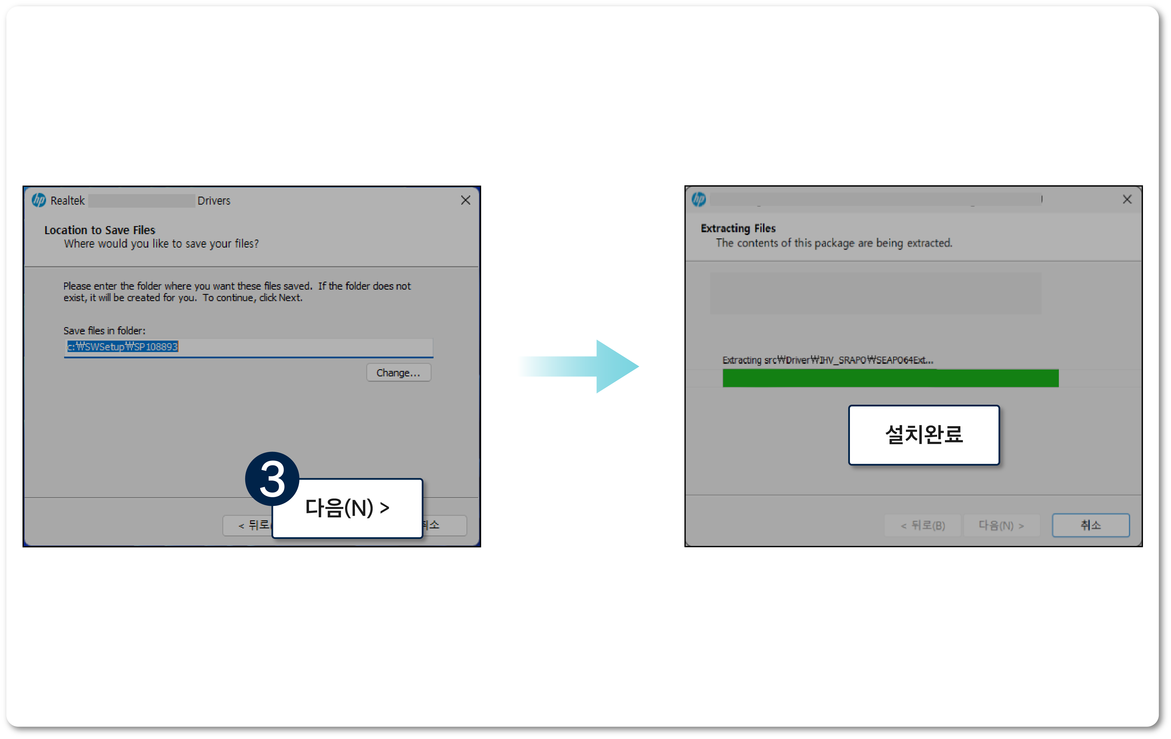 ⑥ 네트워크 드라이버 설치가 끝났다면 노트북을 재부팅하여 네트워크가 정상적으로 연결되는지 확인해 주세요.