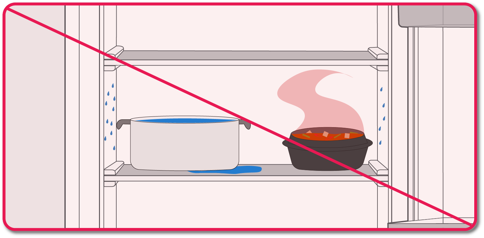 뜨거운 음식을 바로 넣었을 때도 냉장고의 찬 공기와 만나 선반이나 벽면에 물이 생길 수 있습니다.
