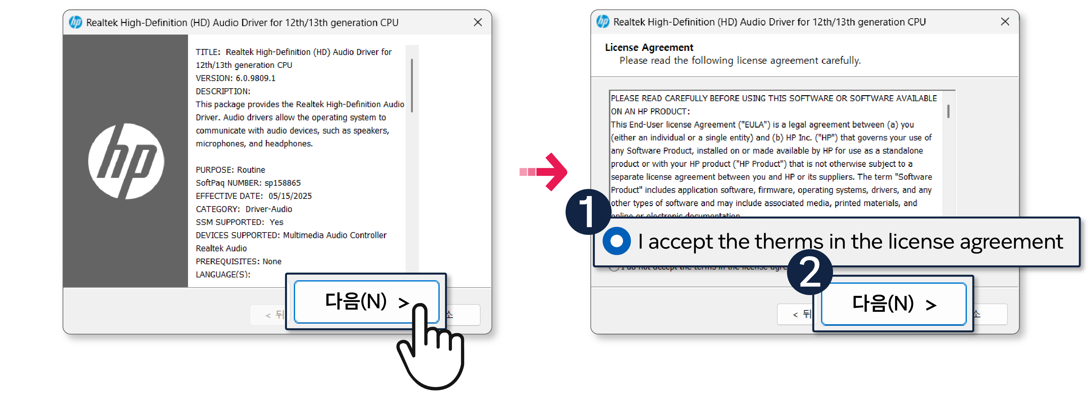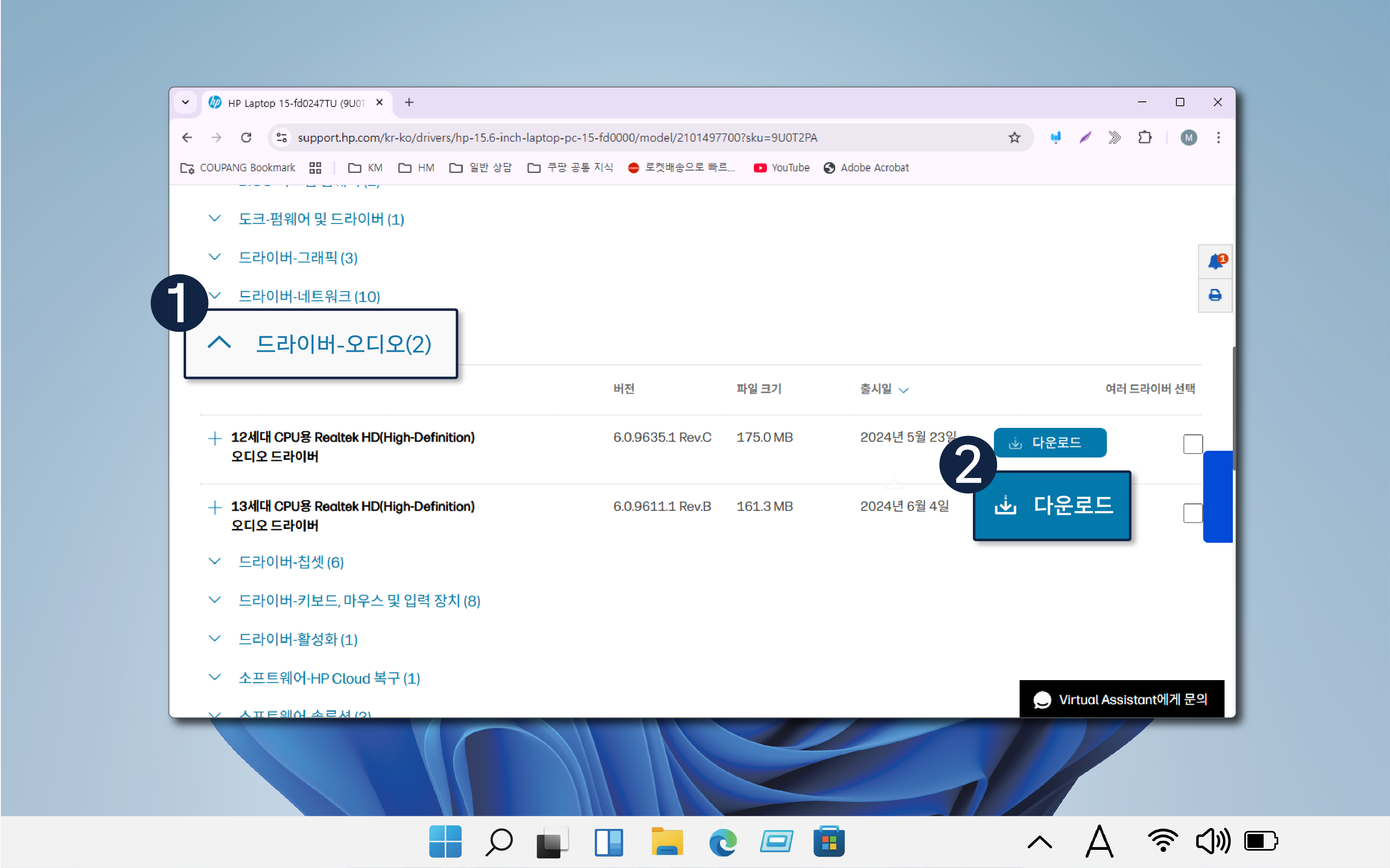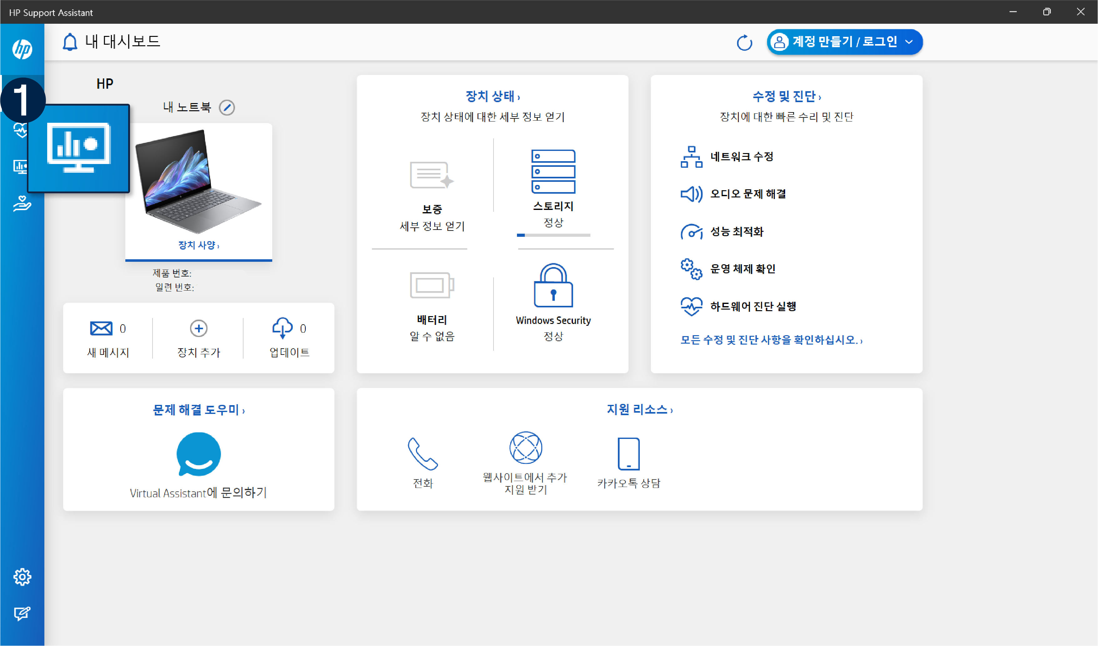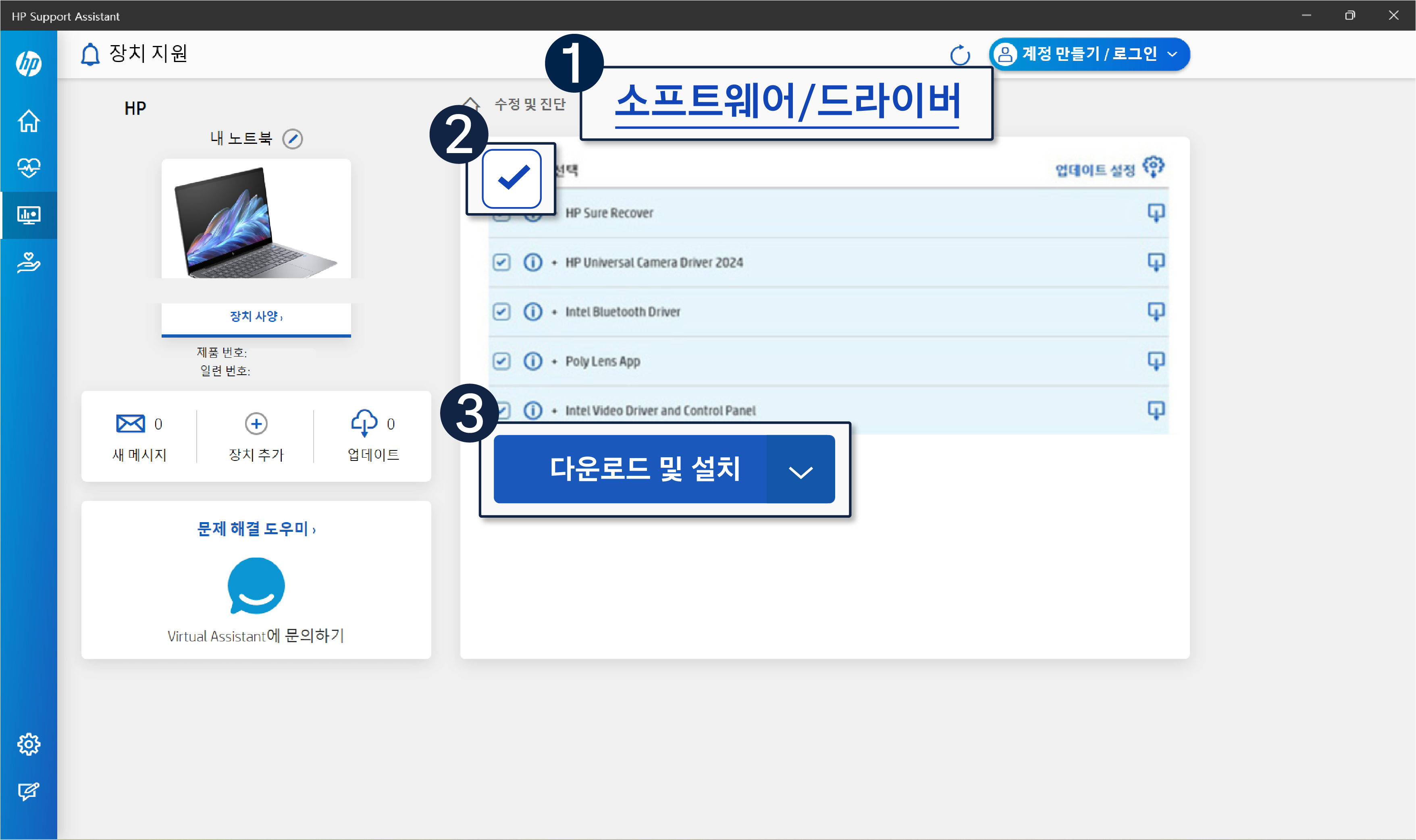 1번 HP Support Assistant 통한 설치 방법 (펼쳐 보기)
