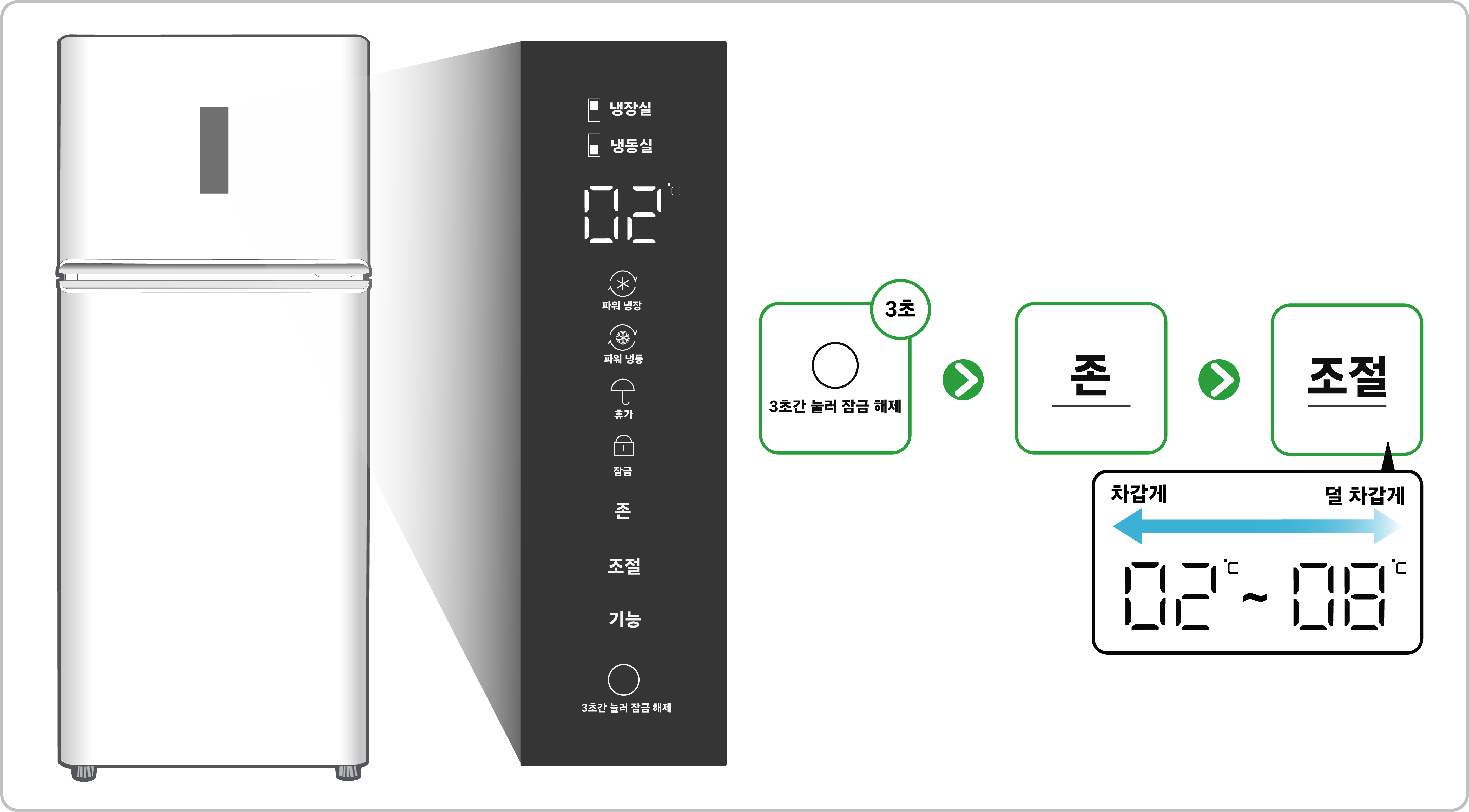 2. 0으로 설정할 경우 냉장/냉동 기능이 꺼집니다.