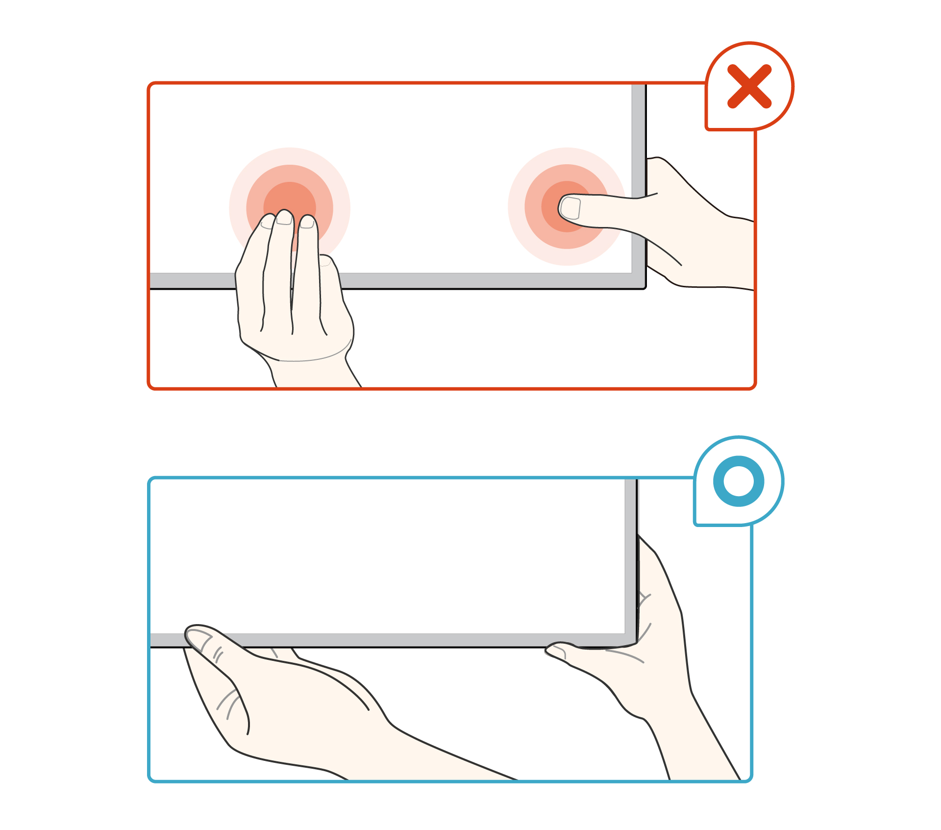 • 벽걸이형 TV의 오른쪽이 내려가 보일 경우 TV의 양 끝쪽을 잡고 오른쪽을 올려 수평을 맞춰주세요.