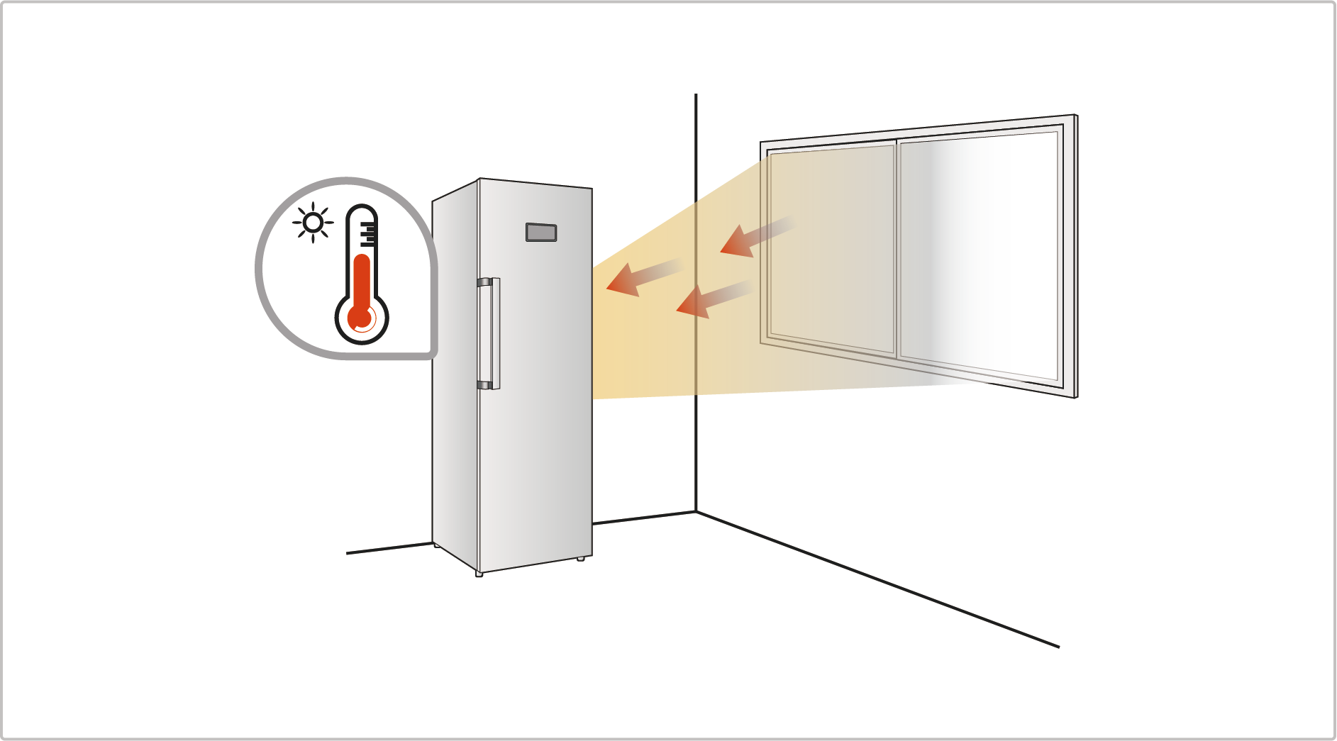 3. 만약 냉동고가 햇빛이 직접 닿는 위치에 설치되어 있으면 냉동고 온도가 올라갈 수 있으므로 직사광선을 피할 수 있는 위치로 옮겨서 사용해 주세요.