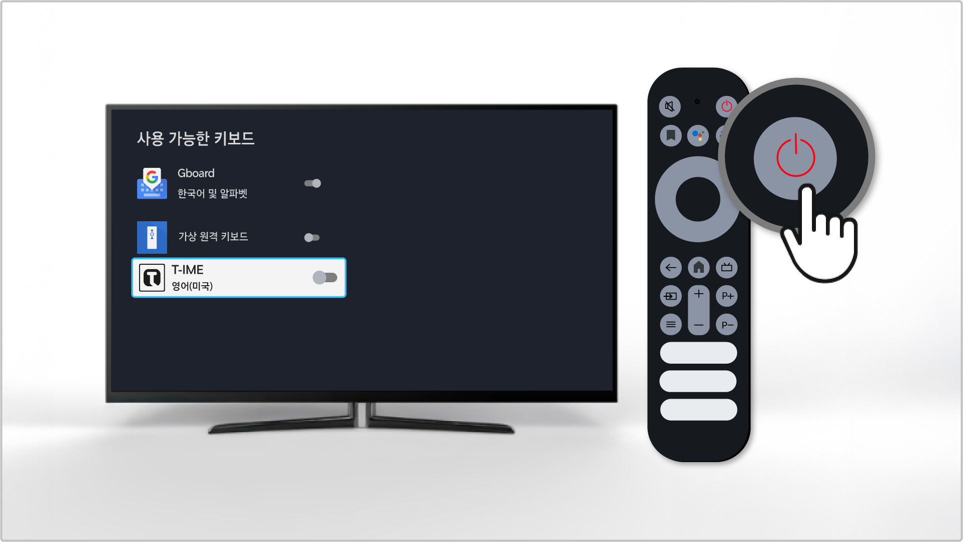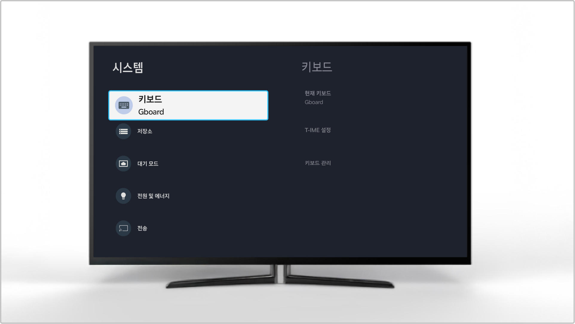 • 키보드 연결 확인 방법: TCL 리모컨 설정(⚙️) → 리모컨 확인 버튼 클릭 → 대시 보드 설정(⚙️) → 시스템 → 키보드 → 연결된 키보드 확인