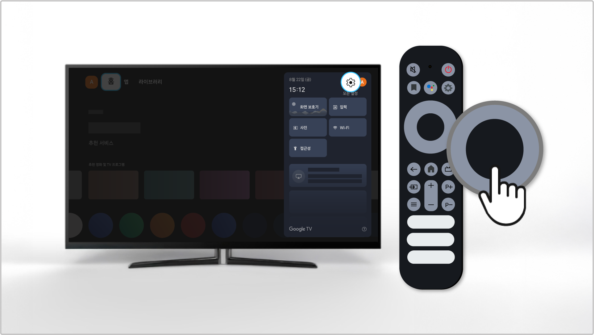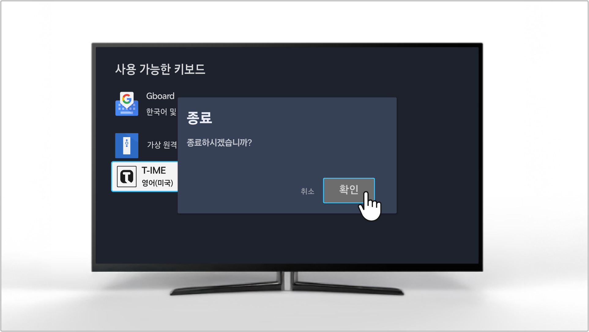• 리모컨 전원 버튼을 3초 이상 길게 누른 후 강제 종료 팝업이 뜬다면 확인 버튼을 눌러서 TV를 재시작해 주세요.