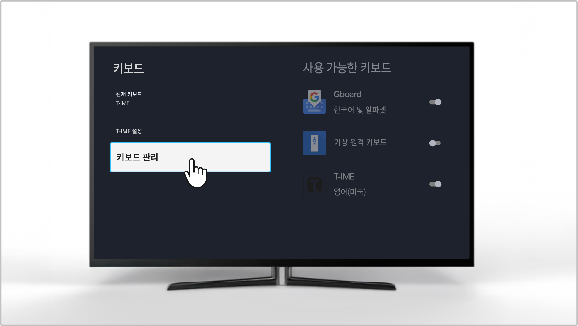 • 키보드 설정이 만약 T-IME로 설정되어 있으면 가상 키보드가 정상적으로 작동되지 않을 수 있습니다.