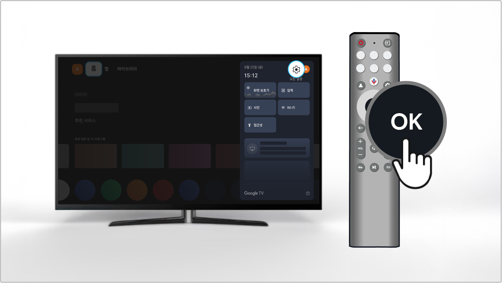 • 절전 타이머 설정 방법: 구글 홈 화면 → TCL 리모컨 설정(⚙️) → 리모컨 확인 버튼 클릭 → 대시 보드 설정(⚙️) → 시스템 → 전원 및 에너지 → 절전 타이머 → 원하는 시간 설정