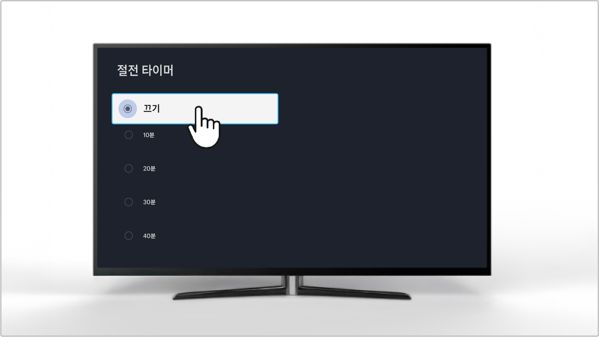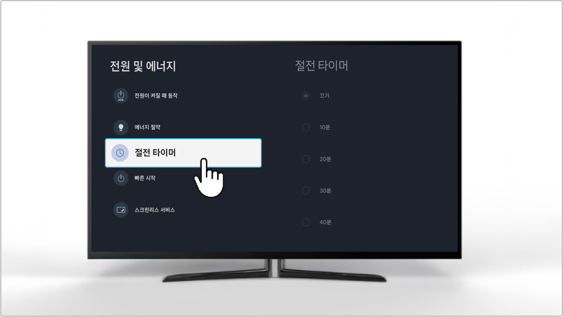 • 절전 타이머 기능을 다시 해제하고 싶은 경우에는 끄기 항목을 선택하여 타이머 기능을 다시 비활성화시켜 주세요.