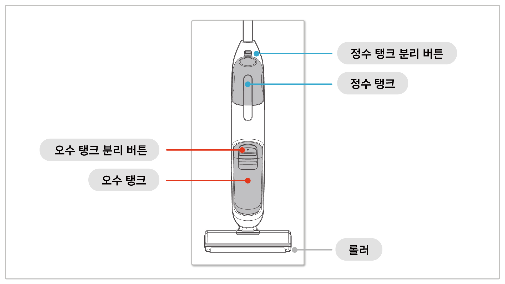 • 기계가 손상되지 않도록 청소기 이동 시에는 정수/오수 탱크에 물이 비어 있는지 확인해 주세요.