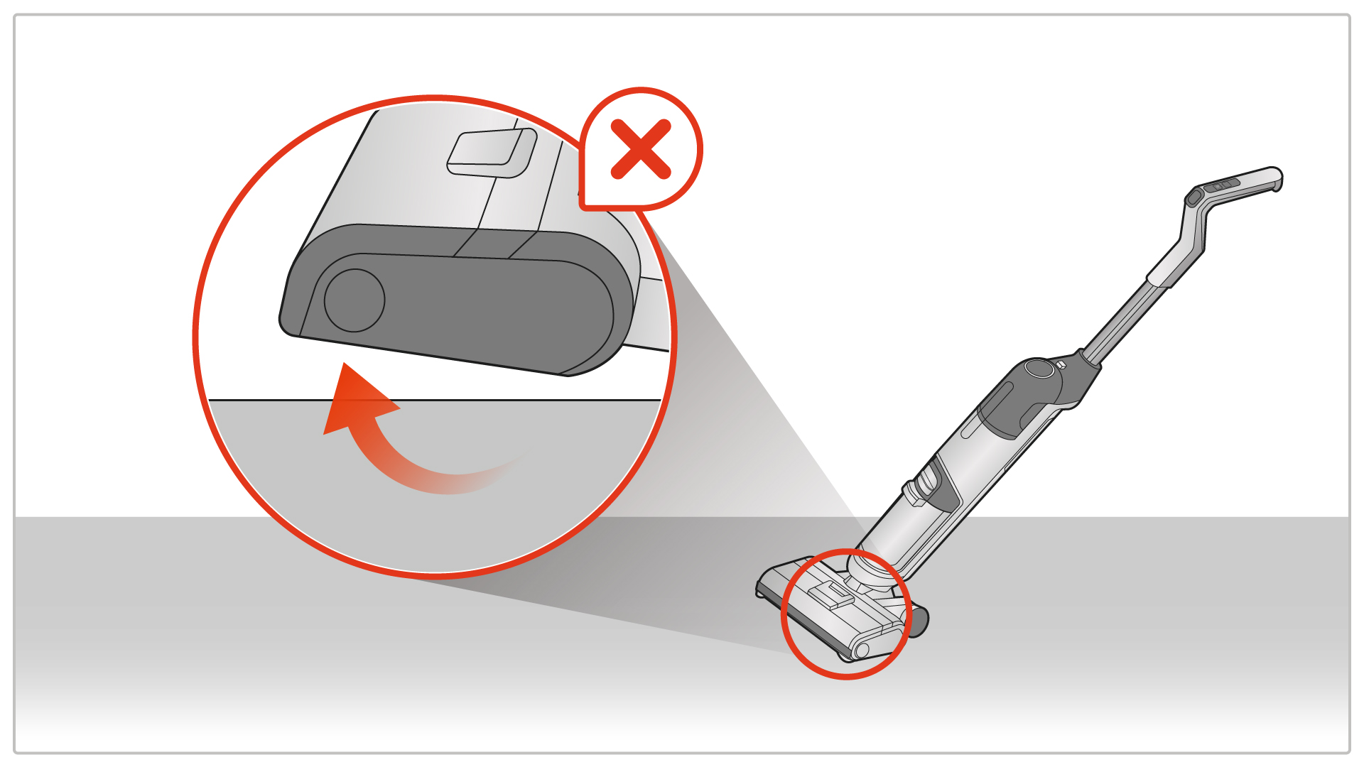 • 핸디스틱 청소기를 사용 시에는 브러시가 지면에서 뜰 정도로 기계를 많이 구부리지 마세요.