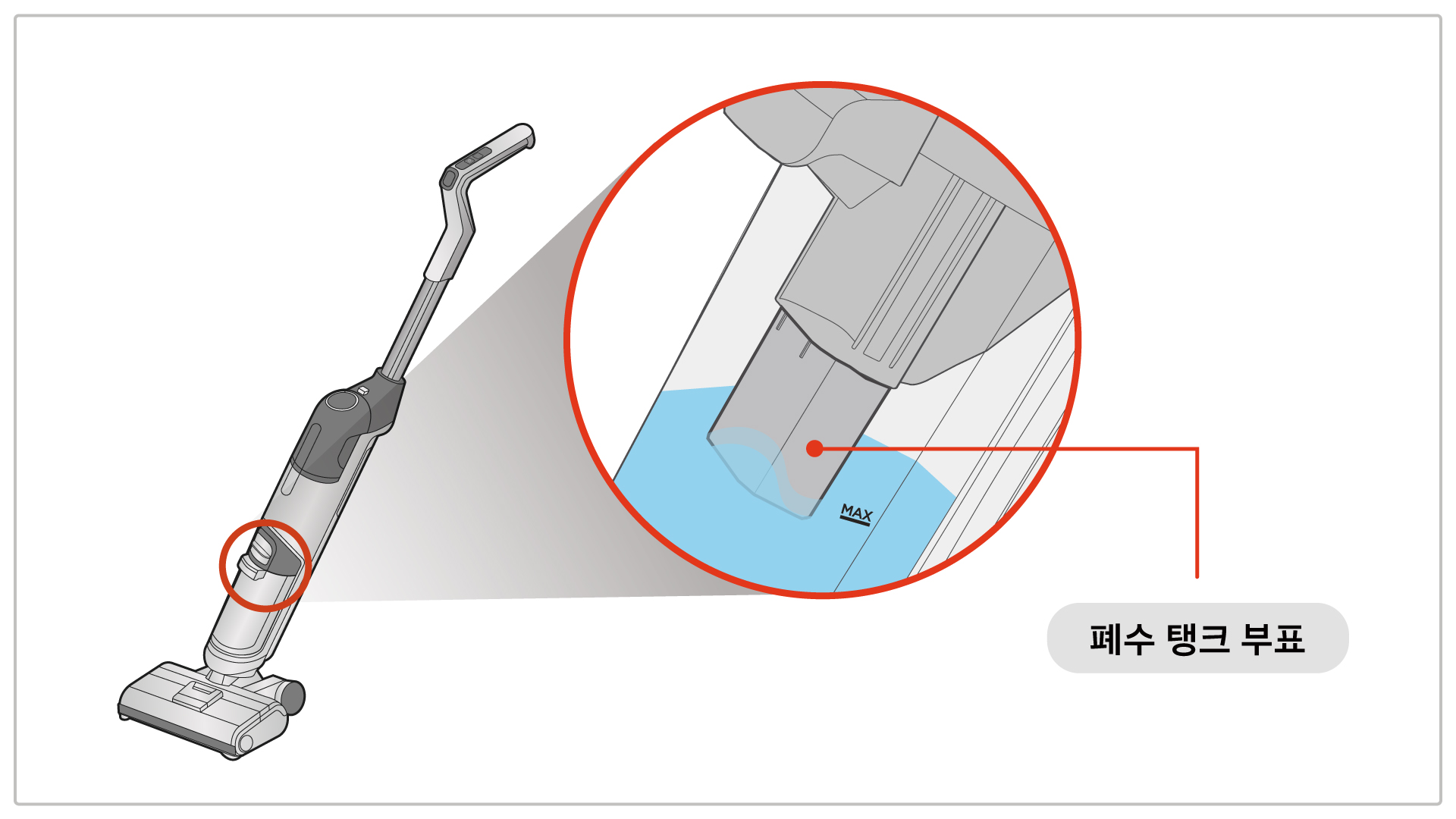 • 청소기의 폐수가 최대치 표시선에 도달하면 부표가 떠올라 흡입 포트 막아 오류가 발생할 수도 있습니다.