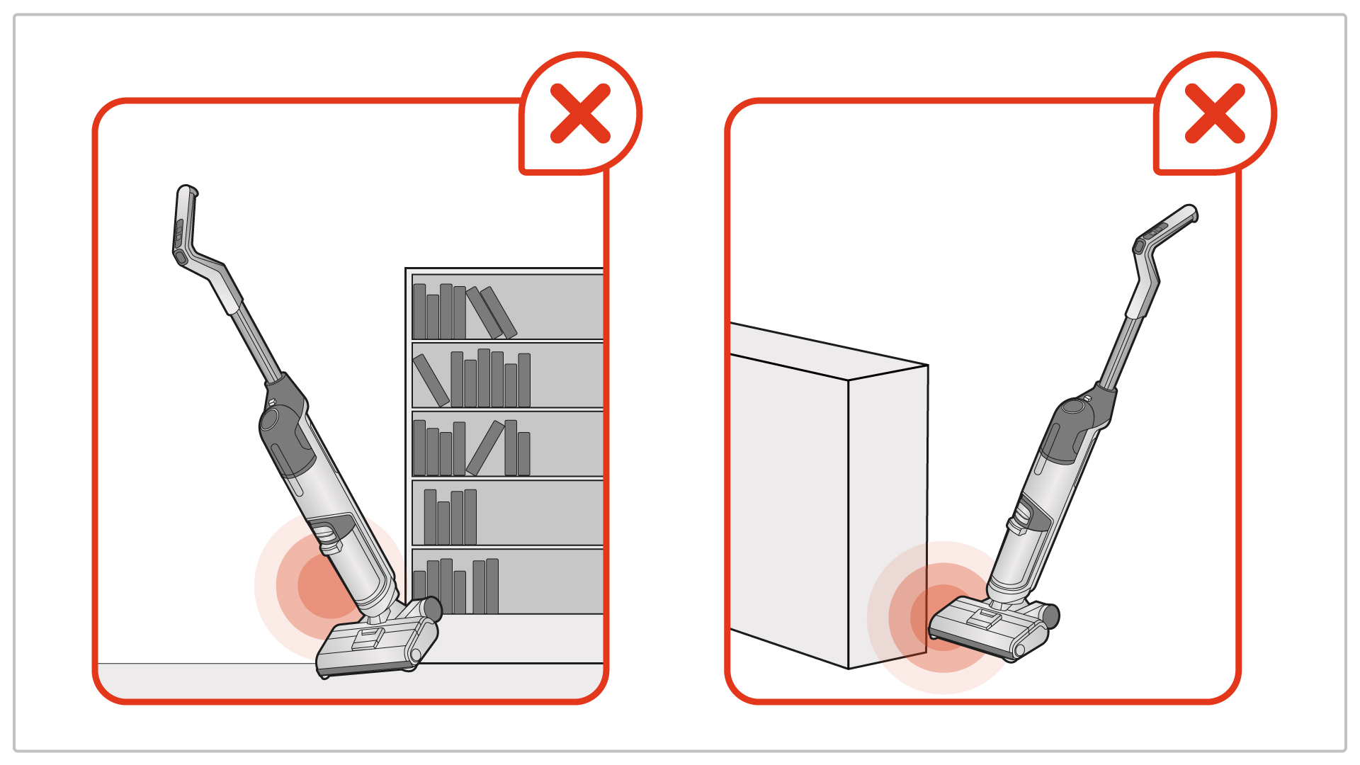 • 청소기가 넘어지거나 사용 중 벽이나 탁자 등에 청소기의 흡입 부품/파이프 등이 부딪혀 충격을 받으면 오수/누수가 생길 수 있습니다.