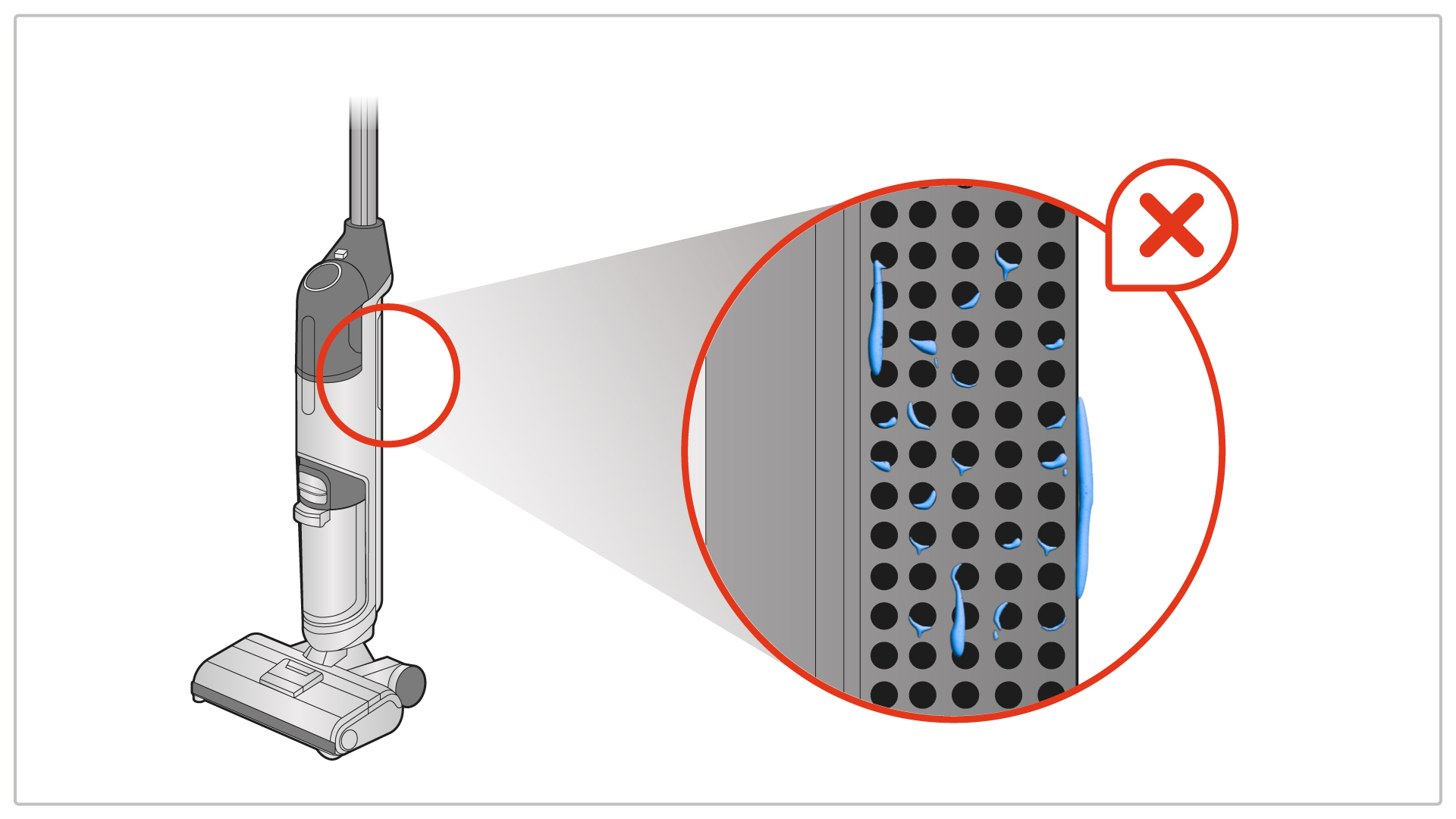 • 핸디스틱 청소기를 사용 시에 폐수가 가득 차면 공기 배출구로 물이 새어 나올 수 있습니다.