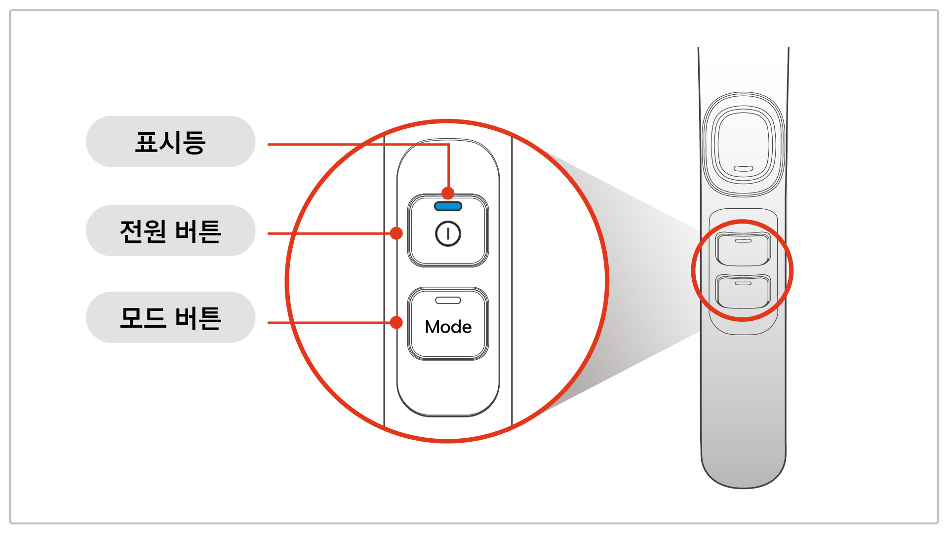 • 충전 중에는 켜기/끄기 표시등이 계속 켜져있으며 파란색으로 유지됩니다.