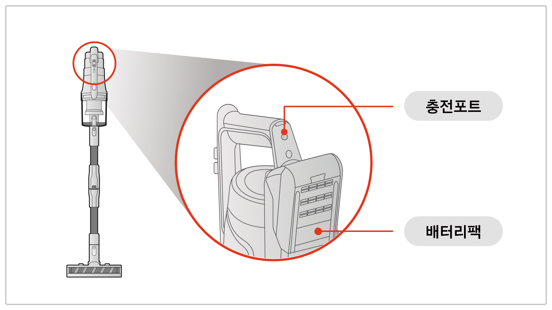 • 기온이 5°C 미만이나 40°C를 초과하는 장소에서는 청소기의 충전이 어려울 수 있으니 적절한 환경에서 충전해 주세요.