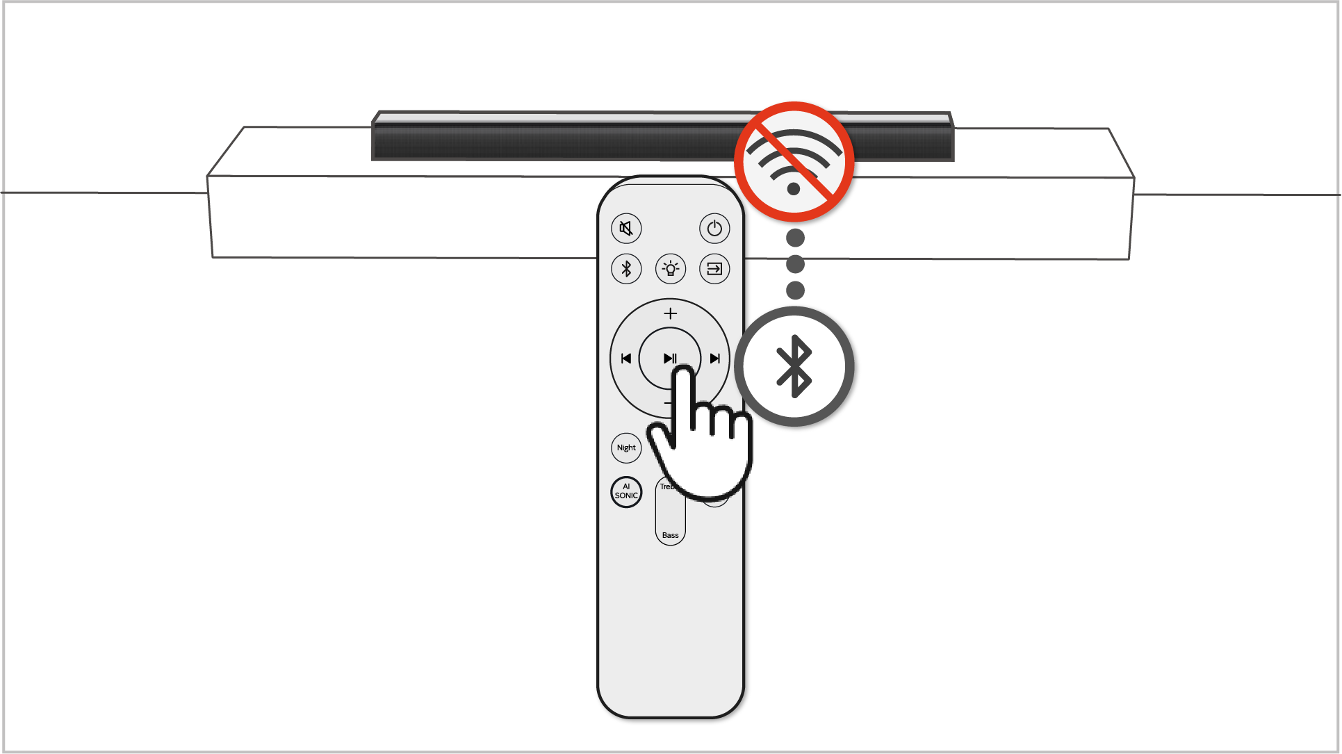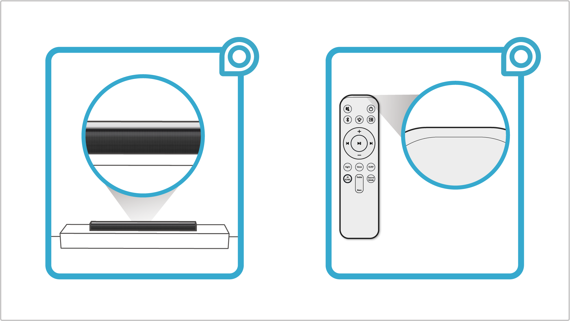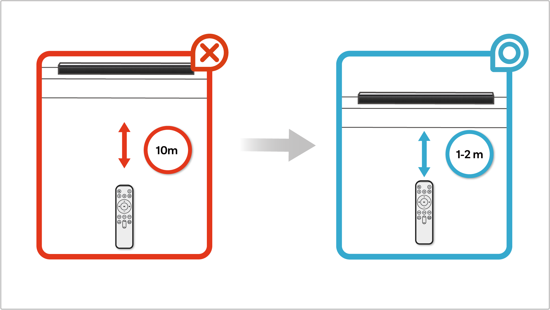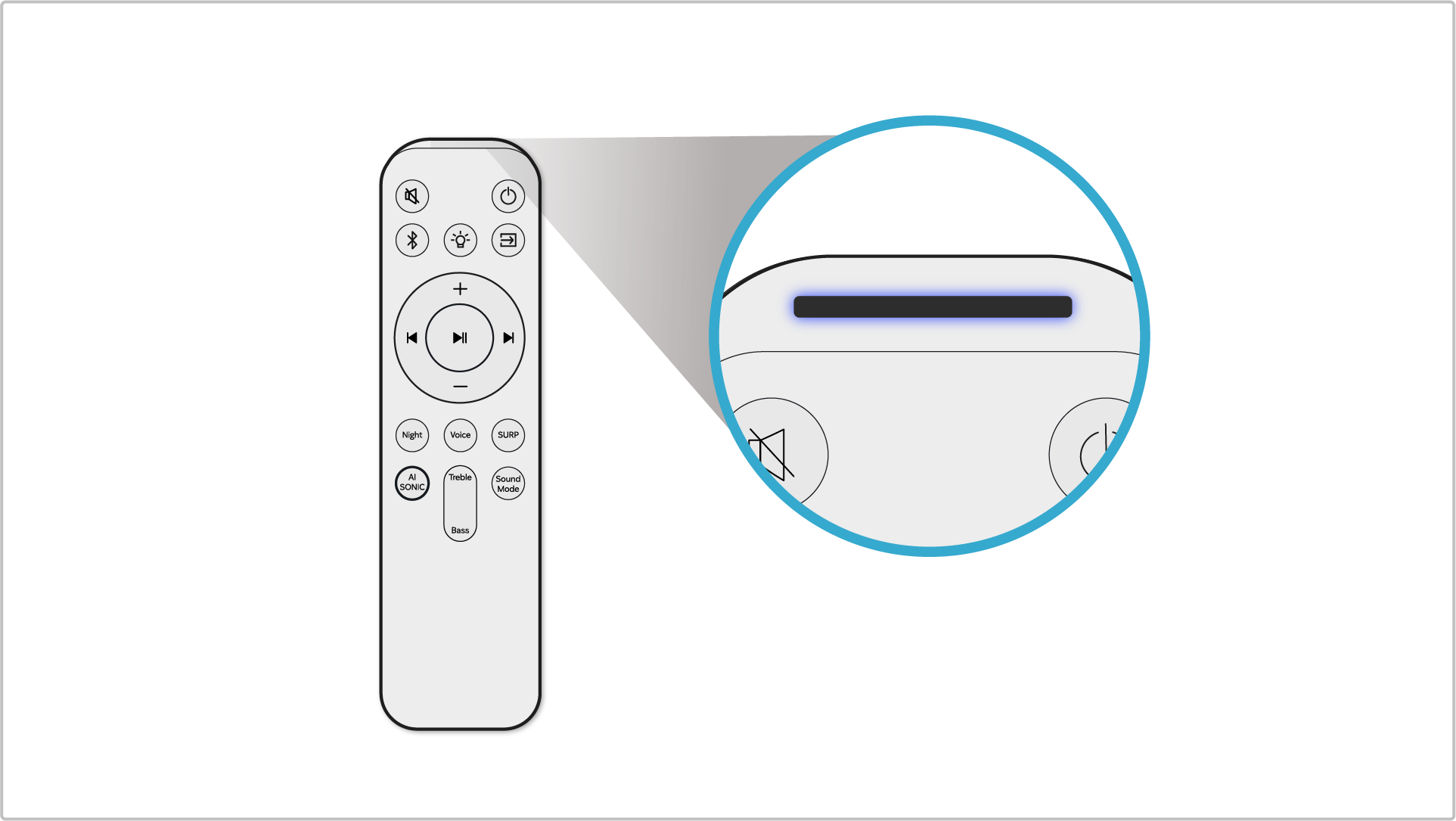 • 전원 수신부 주위에 장애물이 있을 때 버튼이 인식되지 않을 수 있으므로 리모컨을 사운드바 1~2m 거리 내에서 재작동하여 증상을 확인해 주세요.
