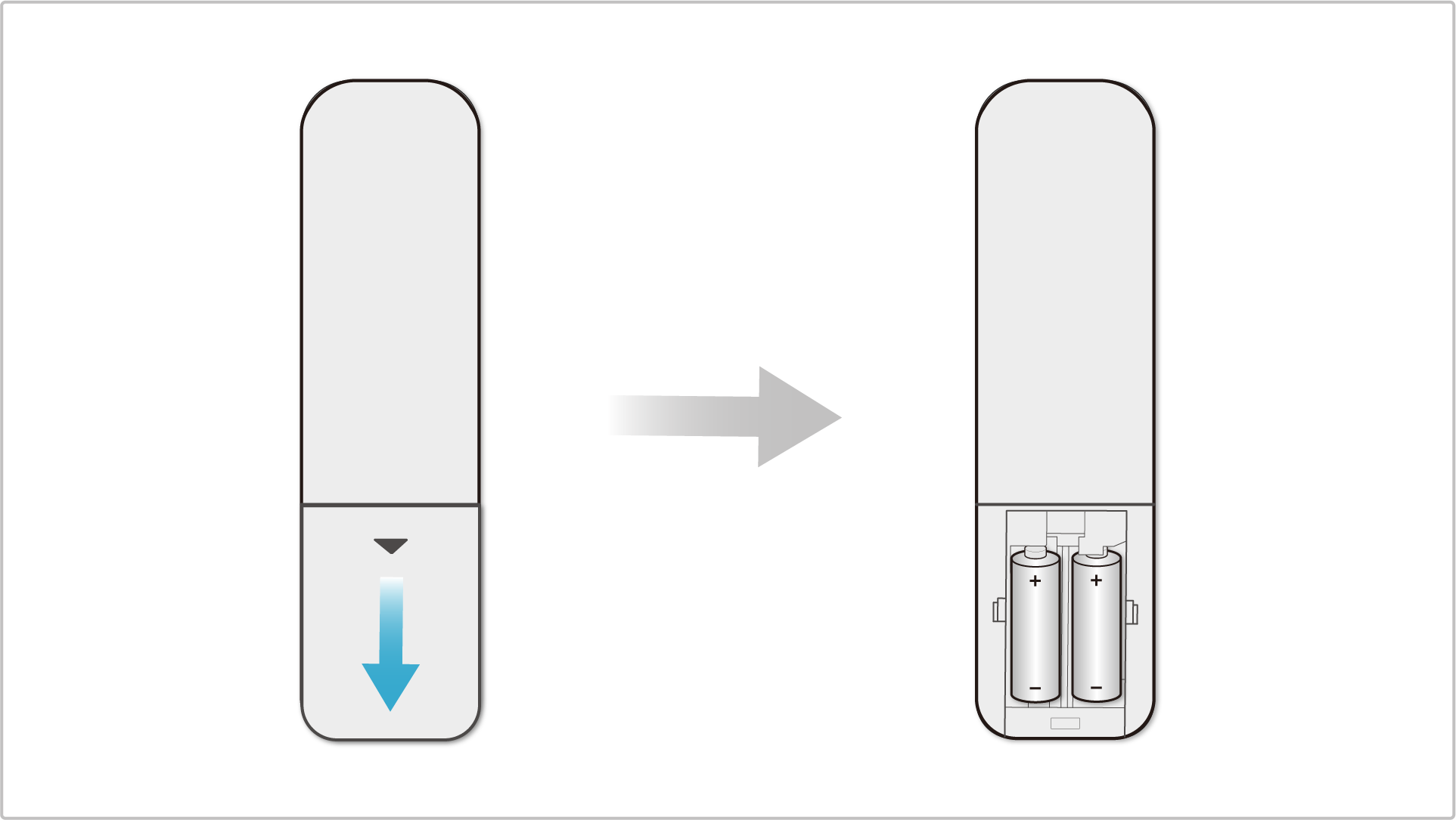 • 리모컨 뒷면 하단에 건전지가 들어 있는 단자 뚜껑을 아래로 밀어 분리해 주세요.