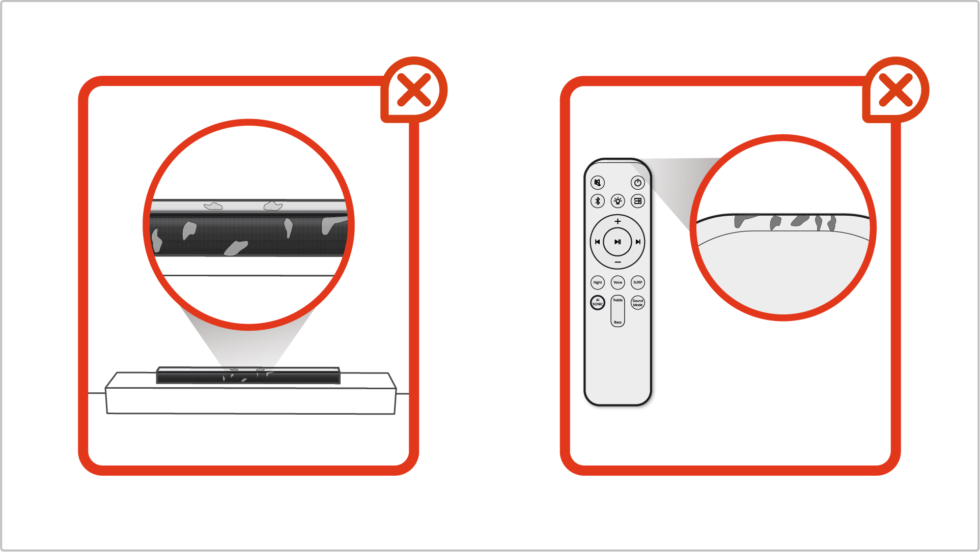• 리모컨이나 사운드바 주위가 먼지, 스티커, 보호필름 등으로 가려져 있는지 확인해 주세요.