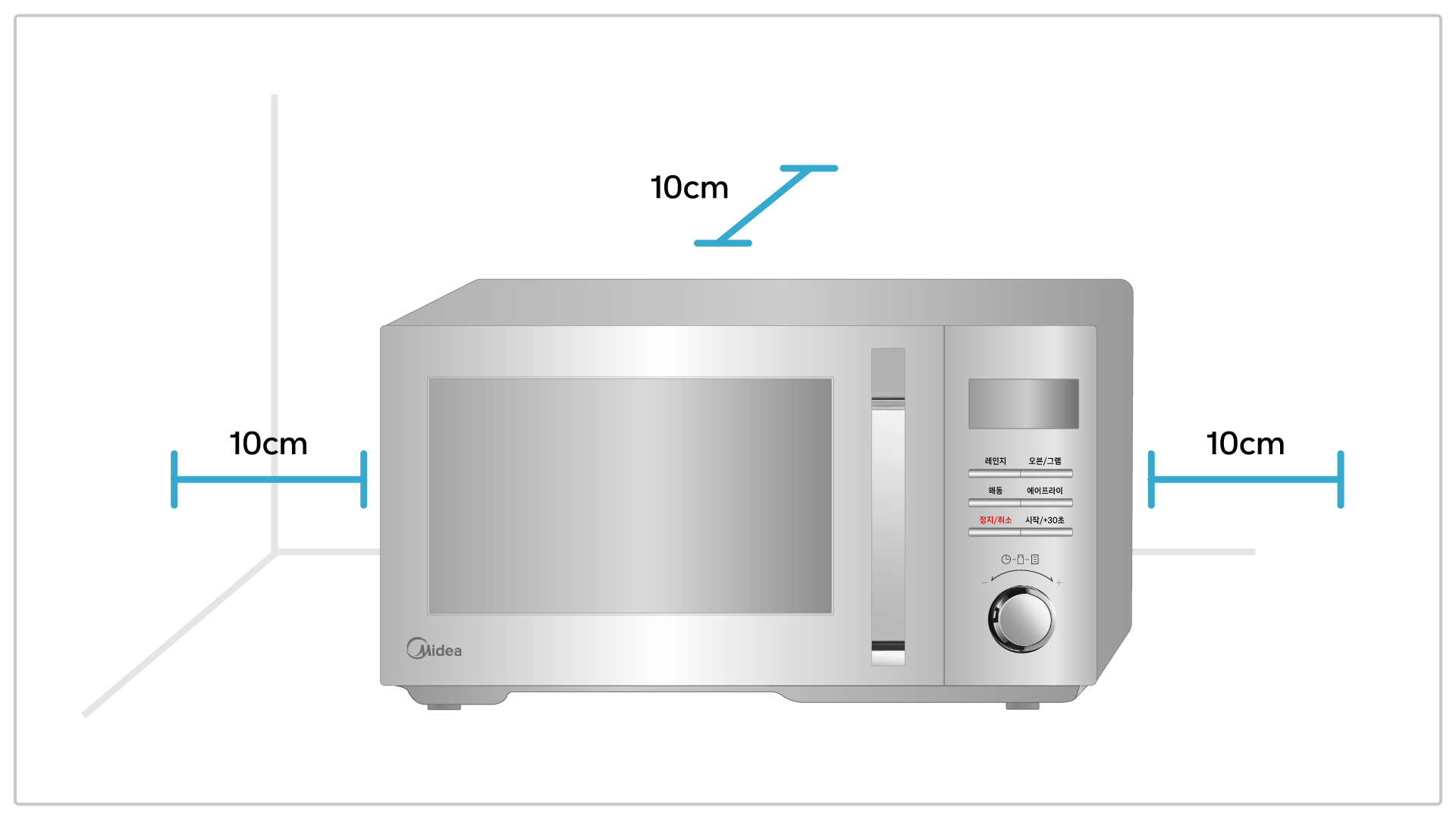 • 제품의 뒷면은 벽과의 거리를 최소 10cm 이상 떨어뜨려 놓고 사용하여 주세요.